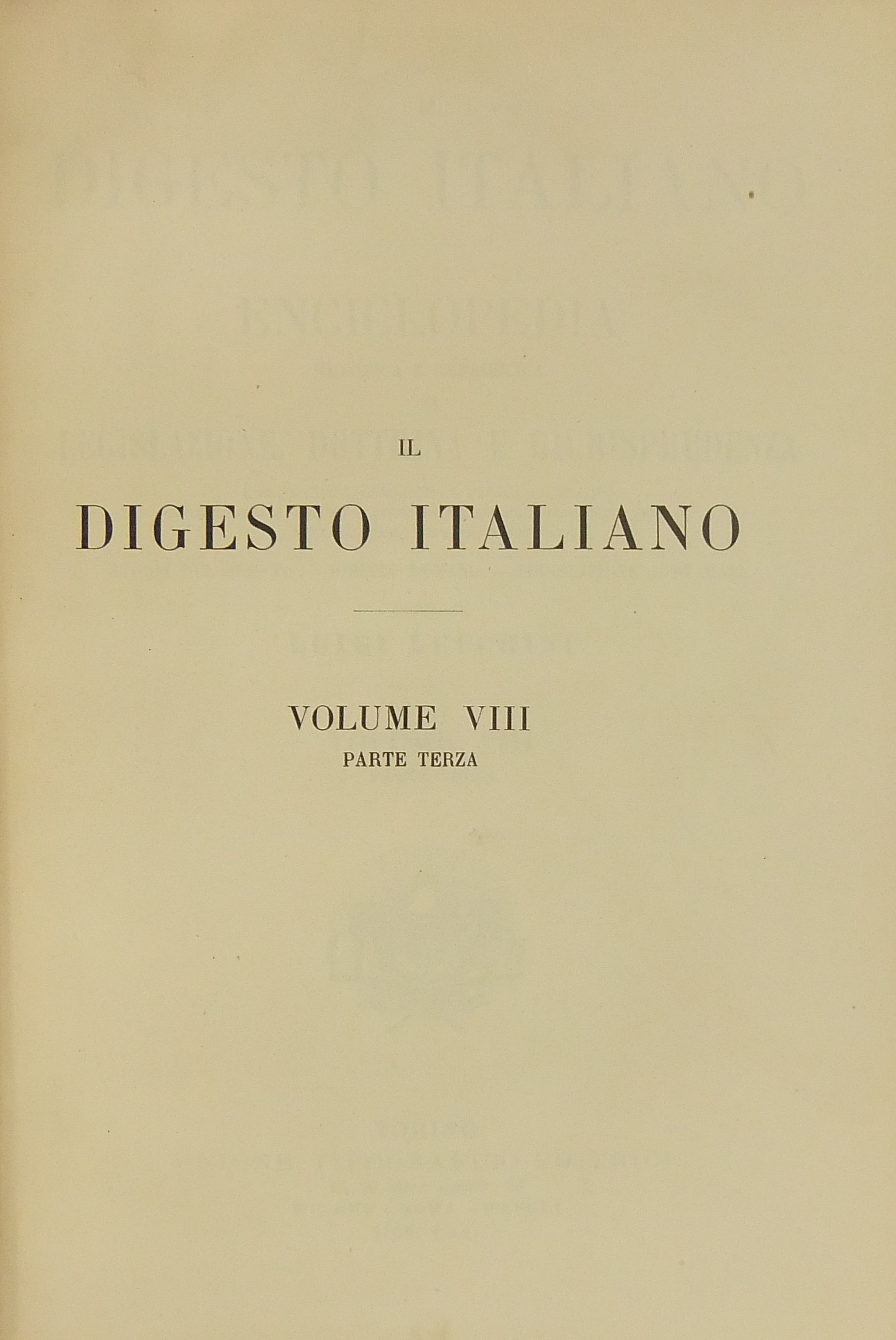 Numero volumi: solo Vol. VIII parte terza
