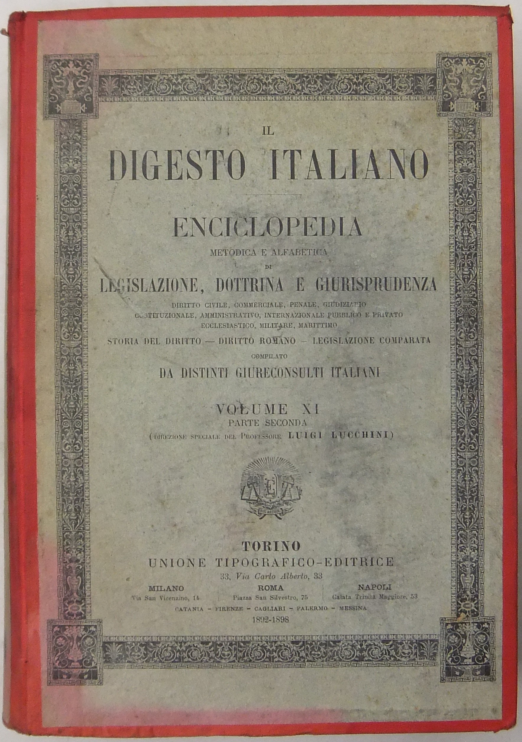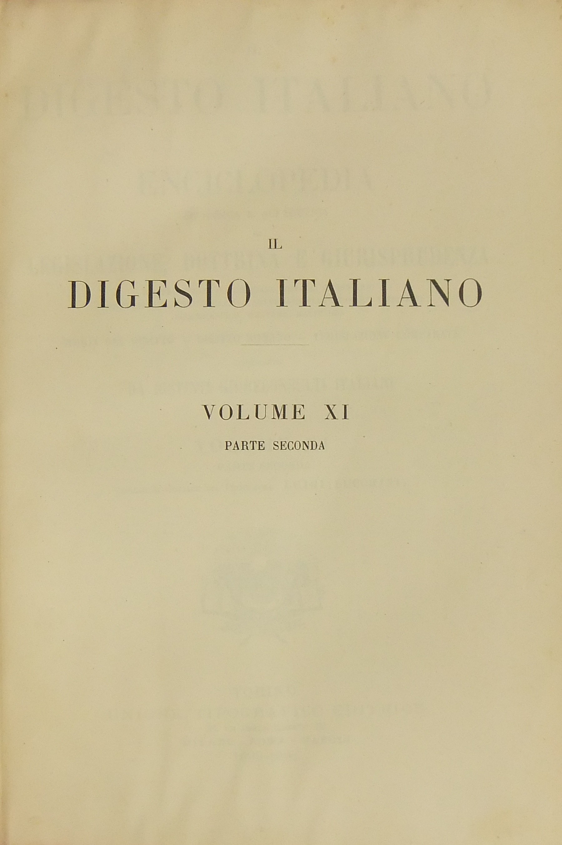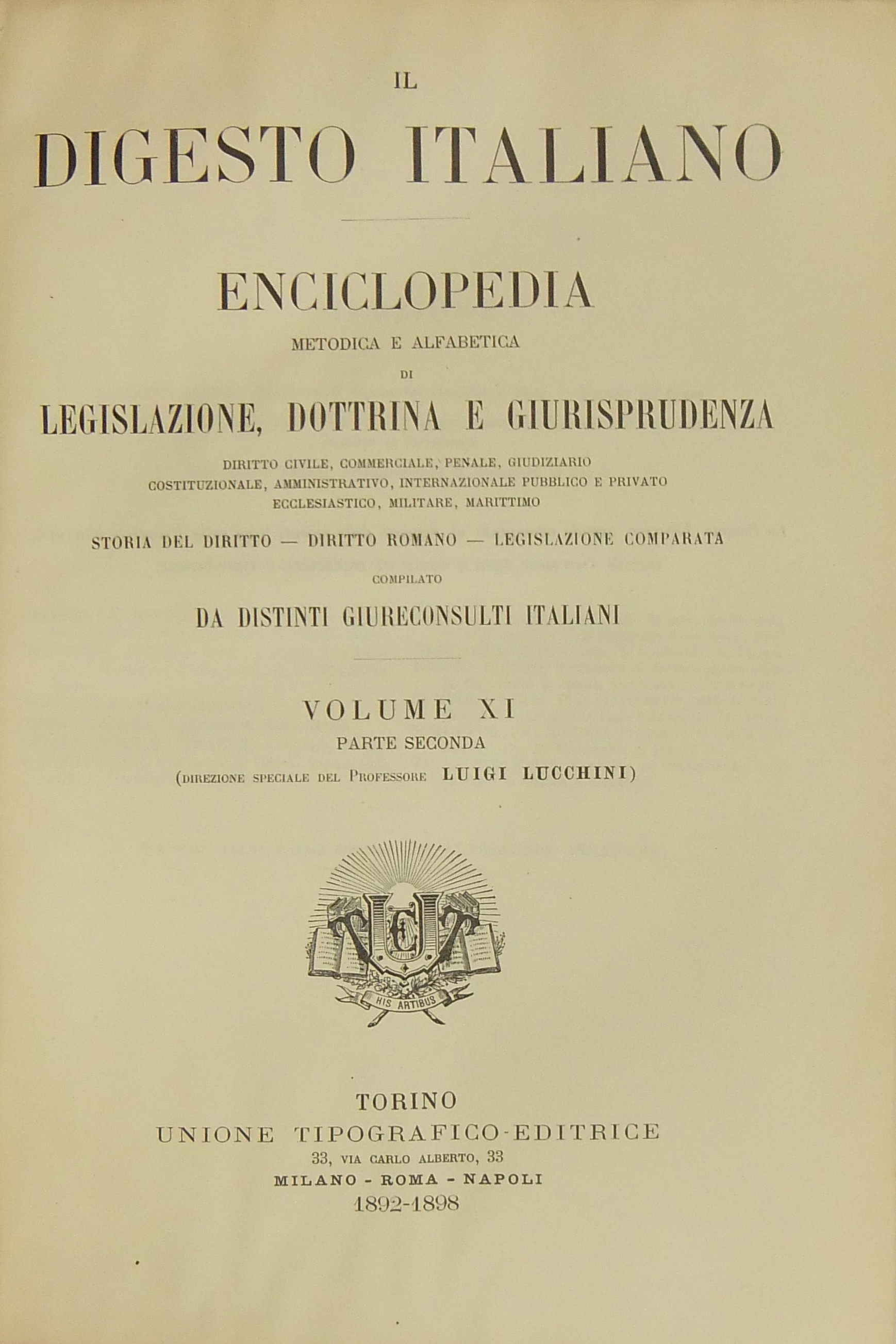 Il Digesto Italiano. Enciclopedia metodica e alfabetica di legislazione dottrina e giurisprudenza compilata da distinti giureconsulti italiani sotto la direzione di Luigi Lucchini. Vol. XI - parte seconda - Ferie giudiziarie-Furto