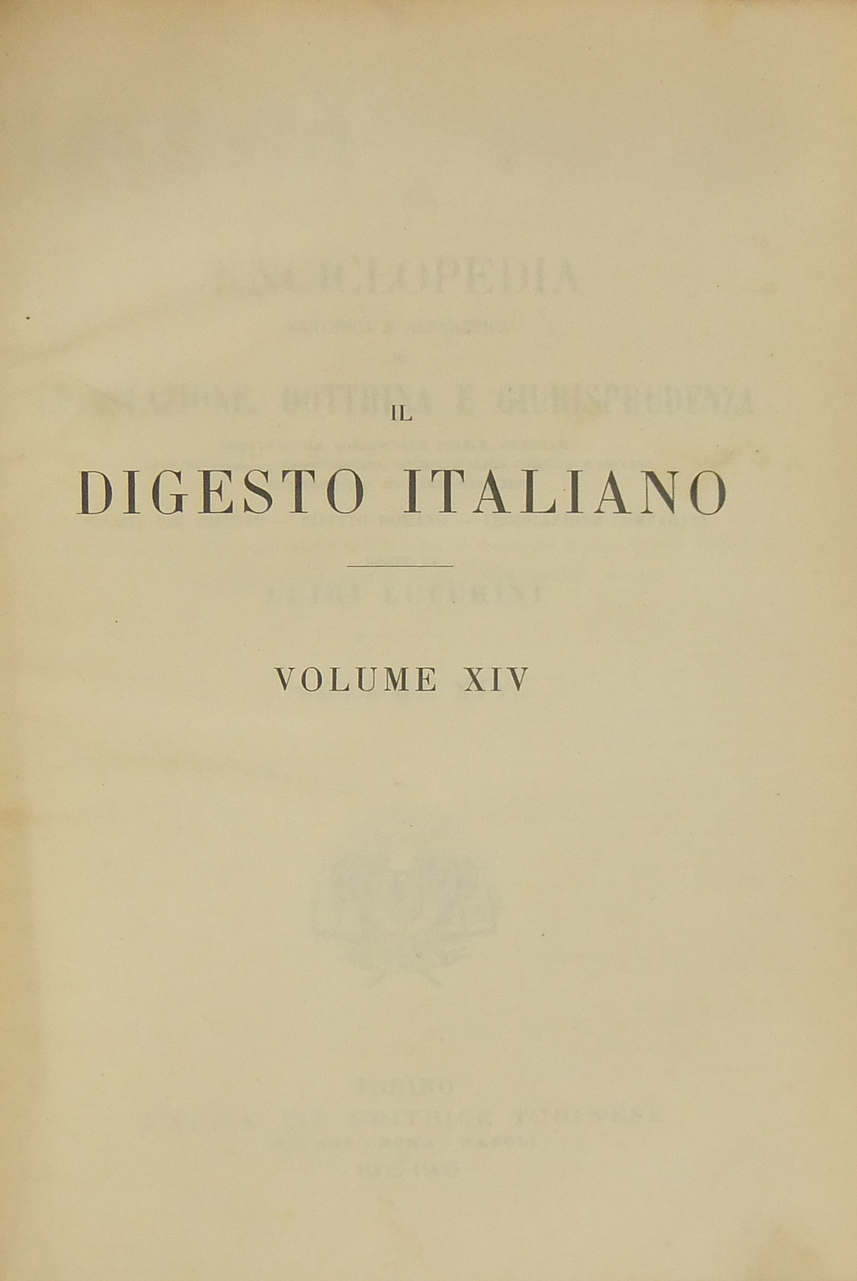 Il Digesto Italiano. Enciclopedia metodica e alfabetica di legislazione dottrina e giurisprudenza compilata da distinti giureconsulti italiani sotto la direzione di Luigi Lucchini. Vol. XIV - Lago. Palude. Stagno-Lutto