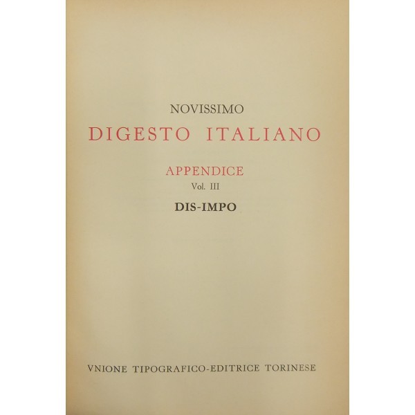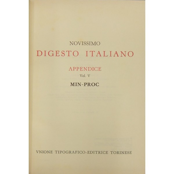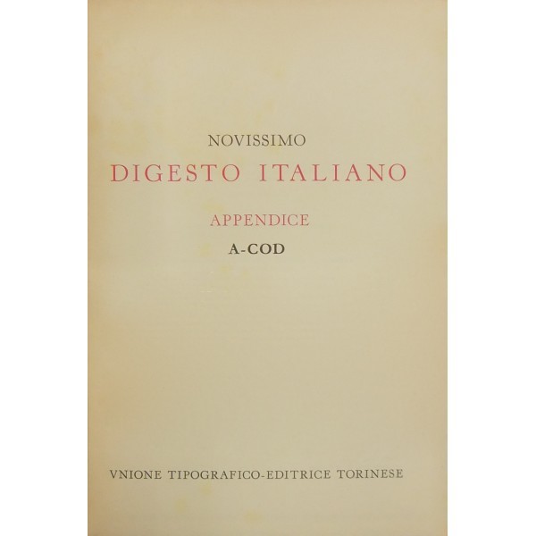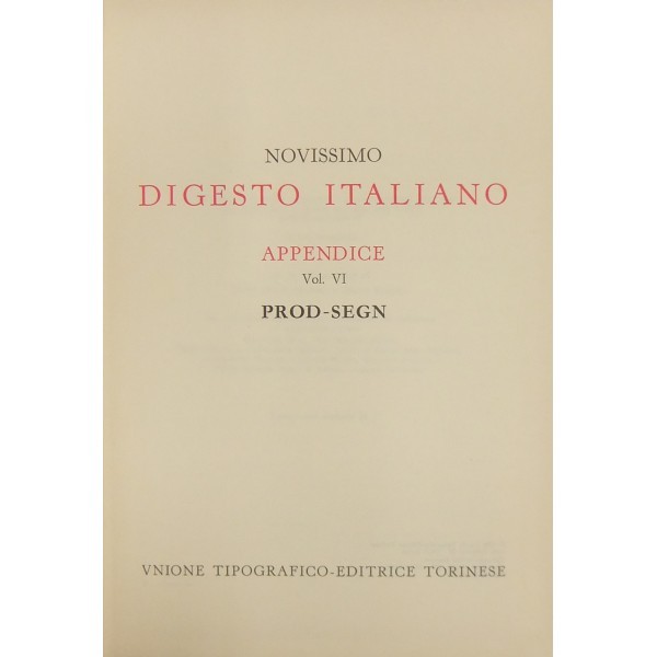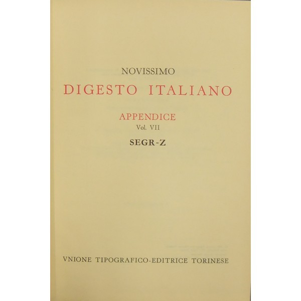 Novissimo Digesto Italiano. Diretto da Antonio Azara e Ernesto Eula. Appendice I - A-COD; Appendice II - COG-DIR; Appendice III - DIS-IMPO; Appendice I - V - IMPR-MIG; Appendice V - MIN-PROC; Appendice VI - PROD-SEGN; Appendice VII - SEGR-Z