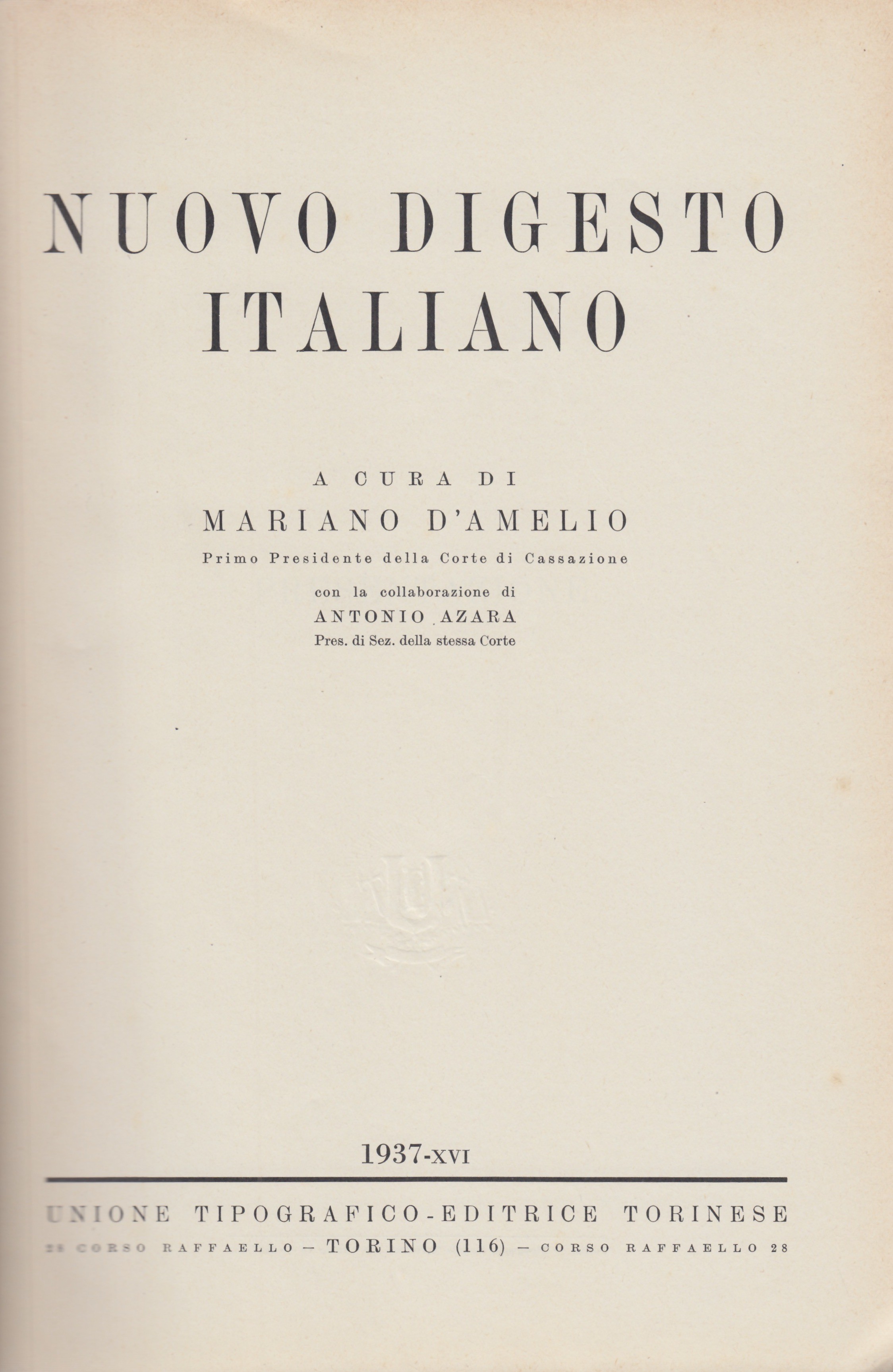 Nuovo Digesto Italiano. A cura di Mariano D'Amelio con la collaborazione di Antonio Azara