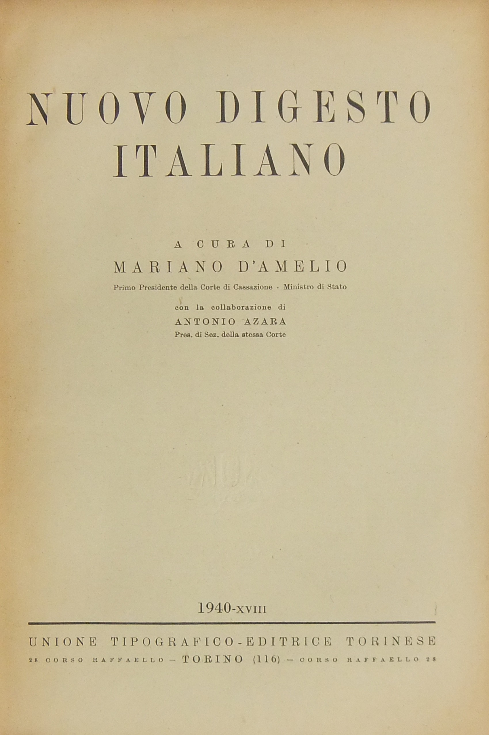 Nuovo Digesto Italiano. A cura di Mariano D'Amelio con la collaborazione di Antonio Azara. Volume XII, p. 1 - SEN-TAS