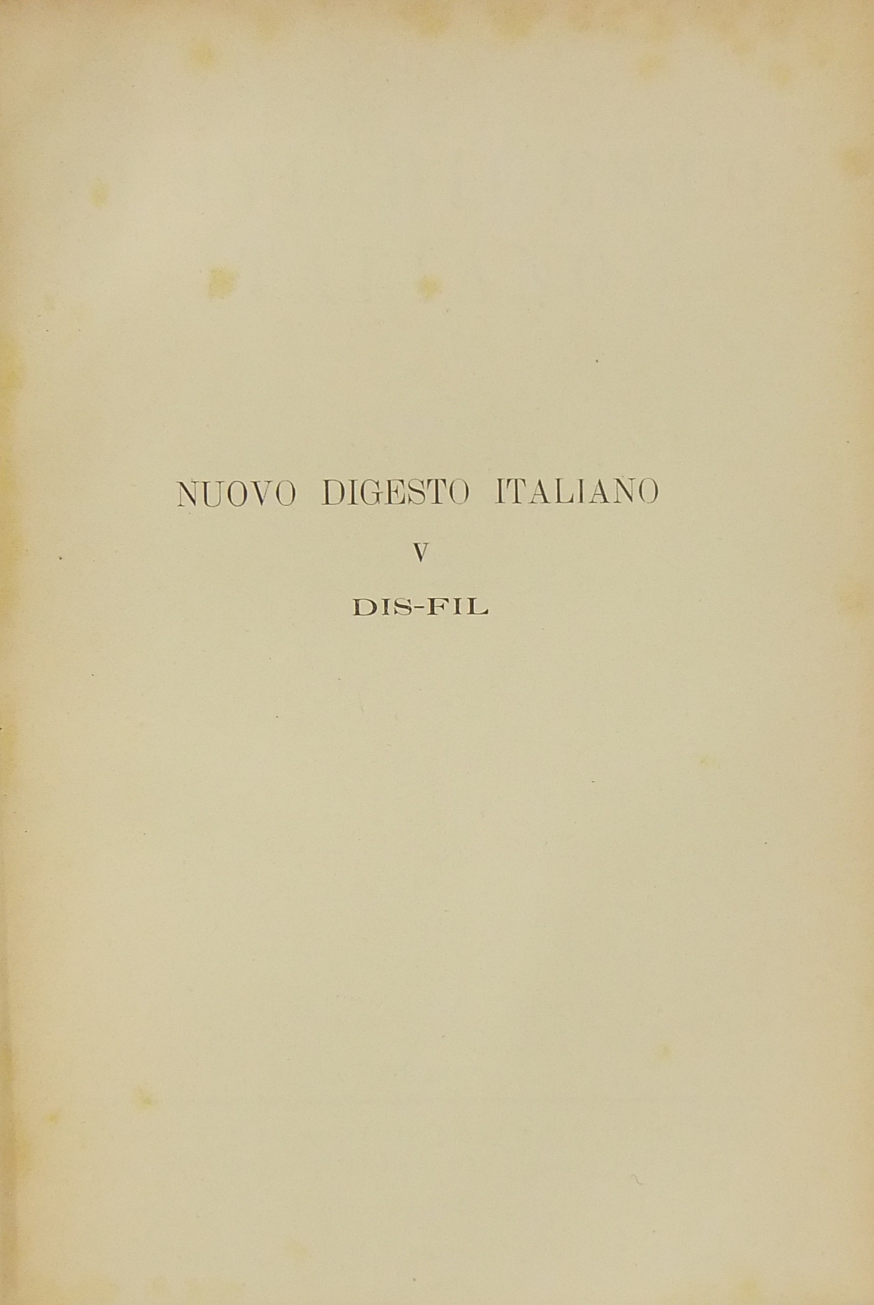 Nuovo Digesto Italiano. A cura di Mariano D'Amelio con la collaborazione di Antonio Azara. Volume V - DIS-FIL