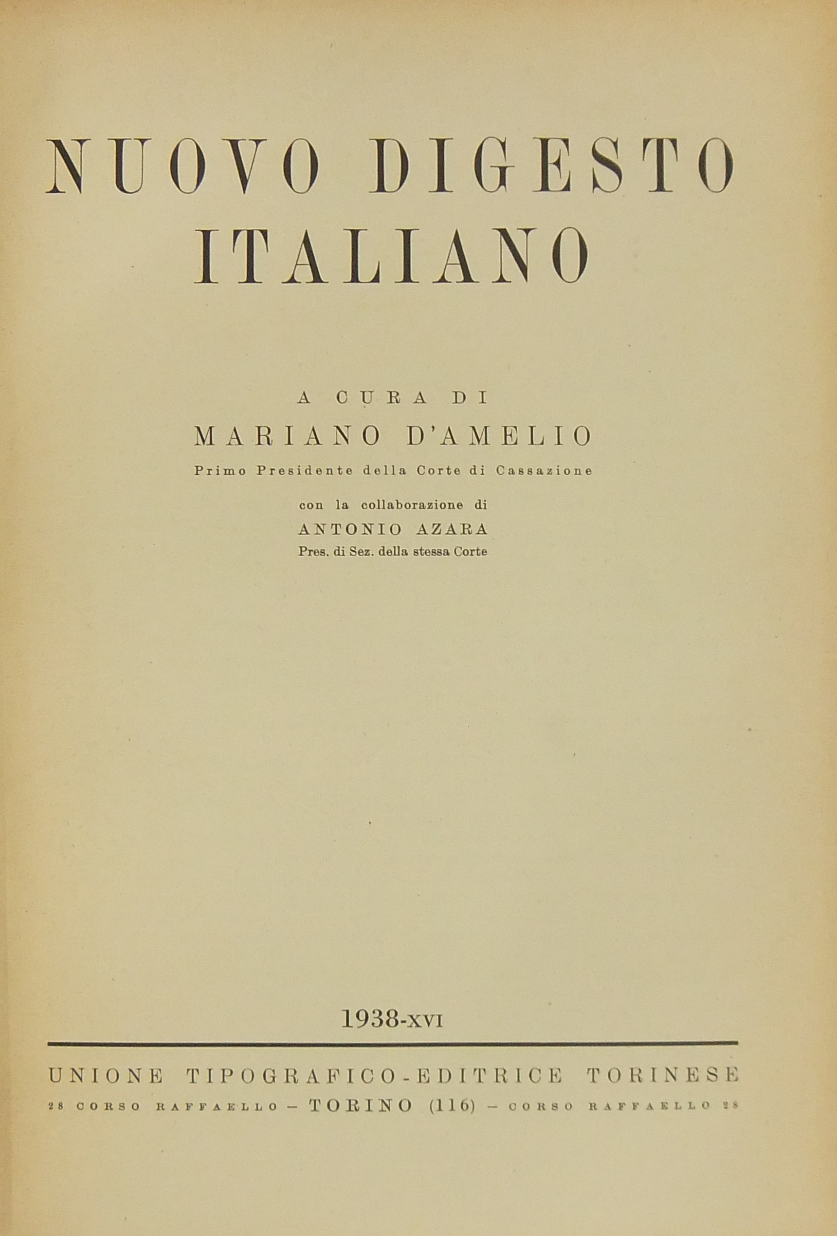 Nuovo Digesto Italiano. A cura di Mariano D’Amelio