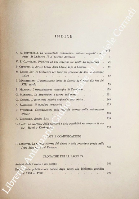 Scritti di: Bittarelli, Calvi, Cantelmo, Ciprotti, Longo, Marchegiani, Marconi, Marinaro, Quadri, Savignano, Stanzione, Wieacker,Â