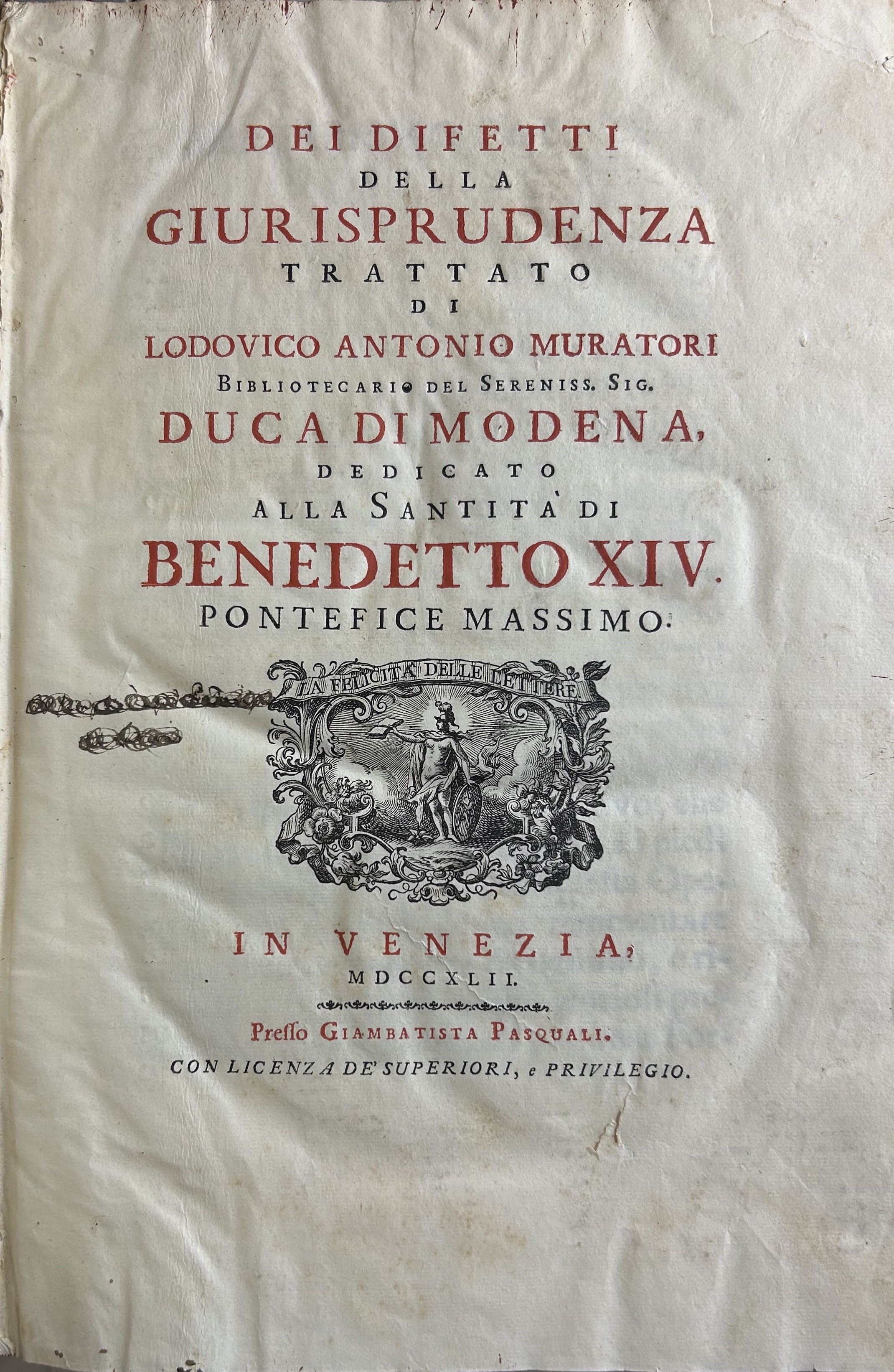 Dei difetti della giurisprudenza. Trattato dedicato alla Santità di Benedetto XIV Pontefice Massimo
