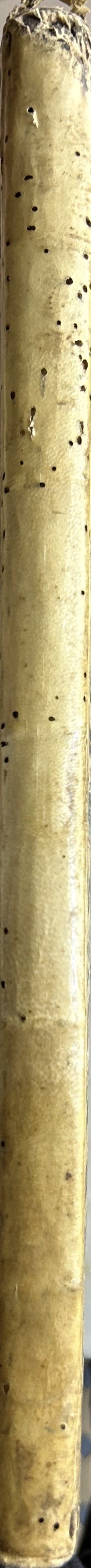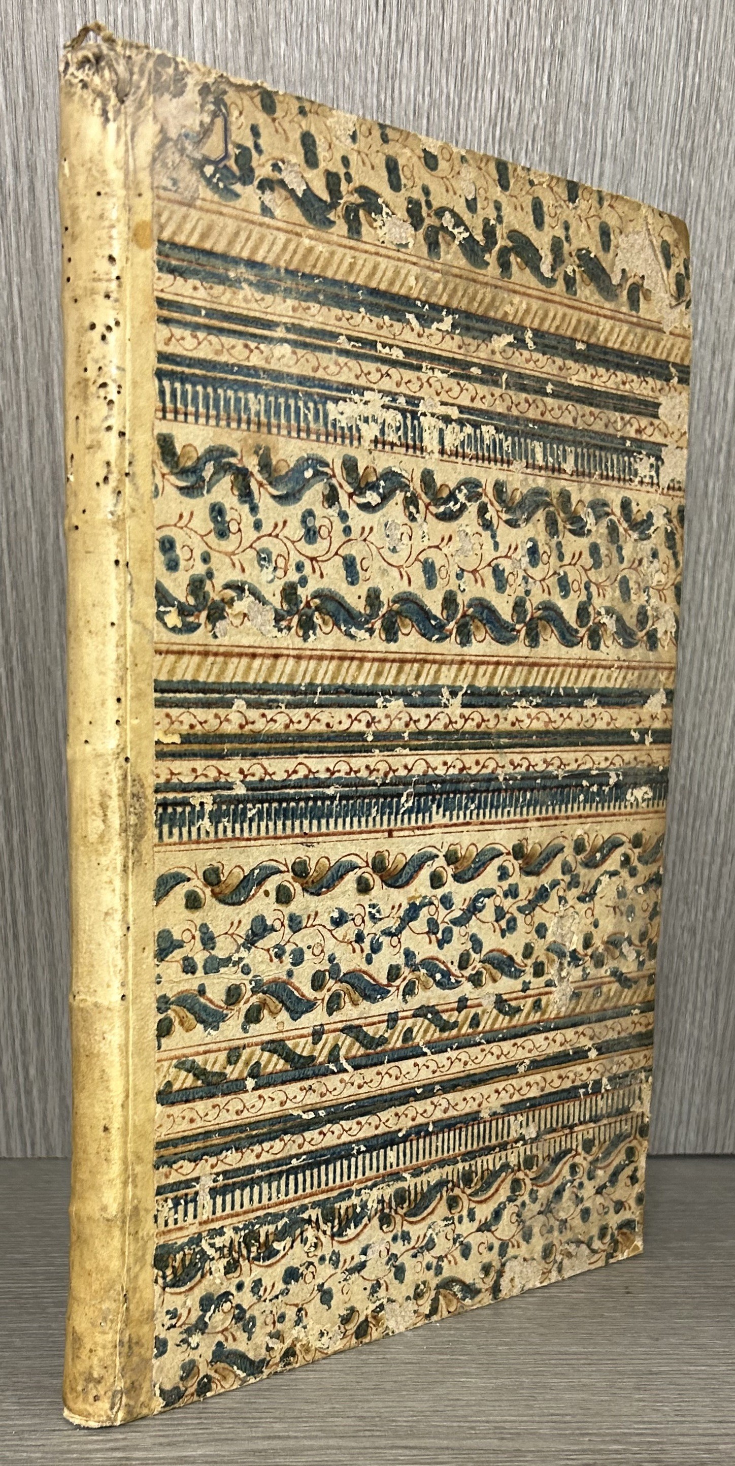Antiche tracce di passaggio di tarlo estinto al dorso, ai contropiatti e lungo il margine di alcune carte, chiaro alone alla parte superiore del volume, antica nota cassata al frontespizio