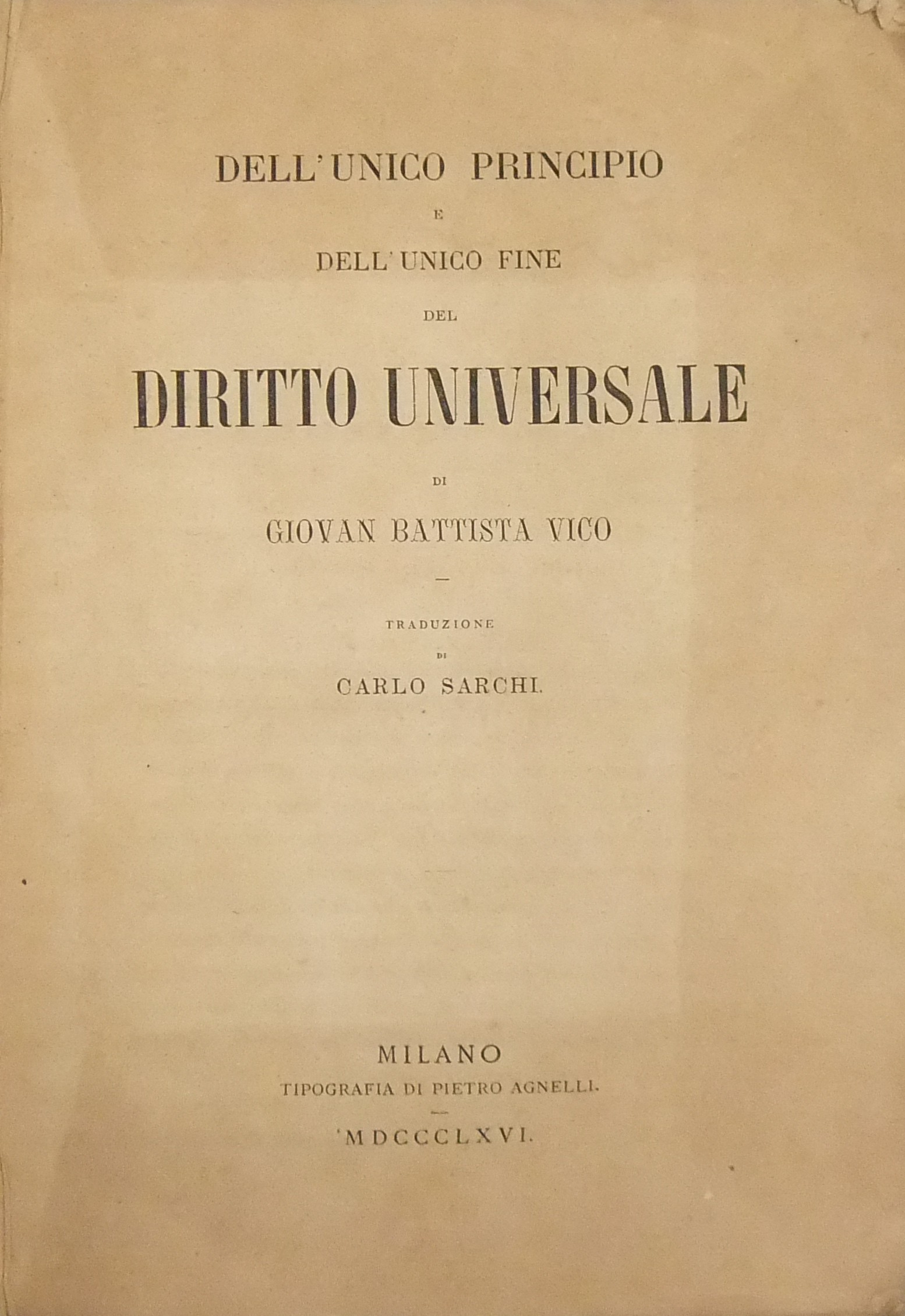 Dell'ordine unico del dritto universale. Prolusione a un corso di Filosofia del dritto letta nella R. Università degli Studi di Napoli addì 3 dicembre 1881