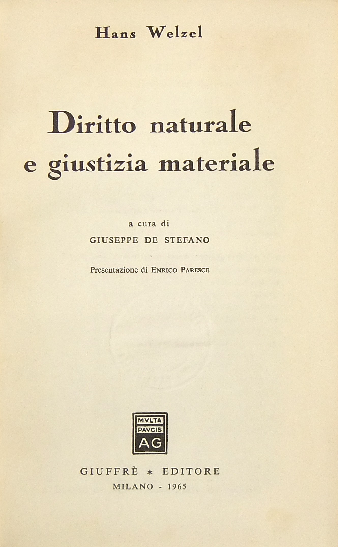 Diritto naturale e giustizia materiale. A cura di Giuseppe De Stefano. Presentazione di Enrico Paresce