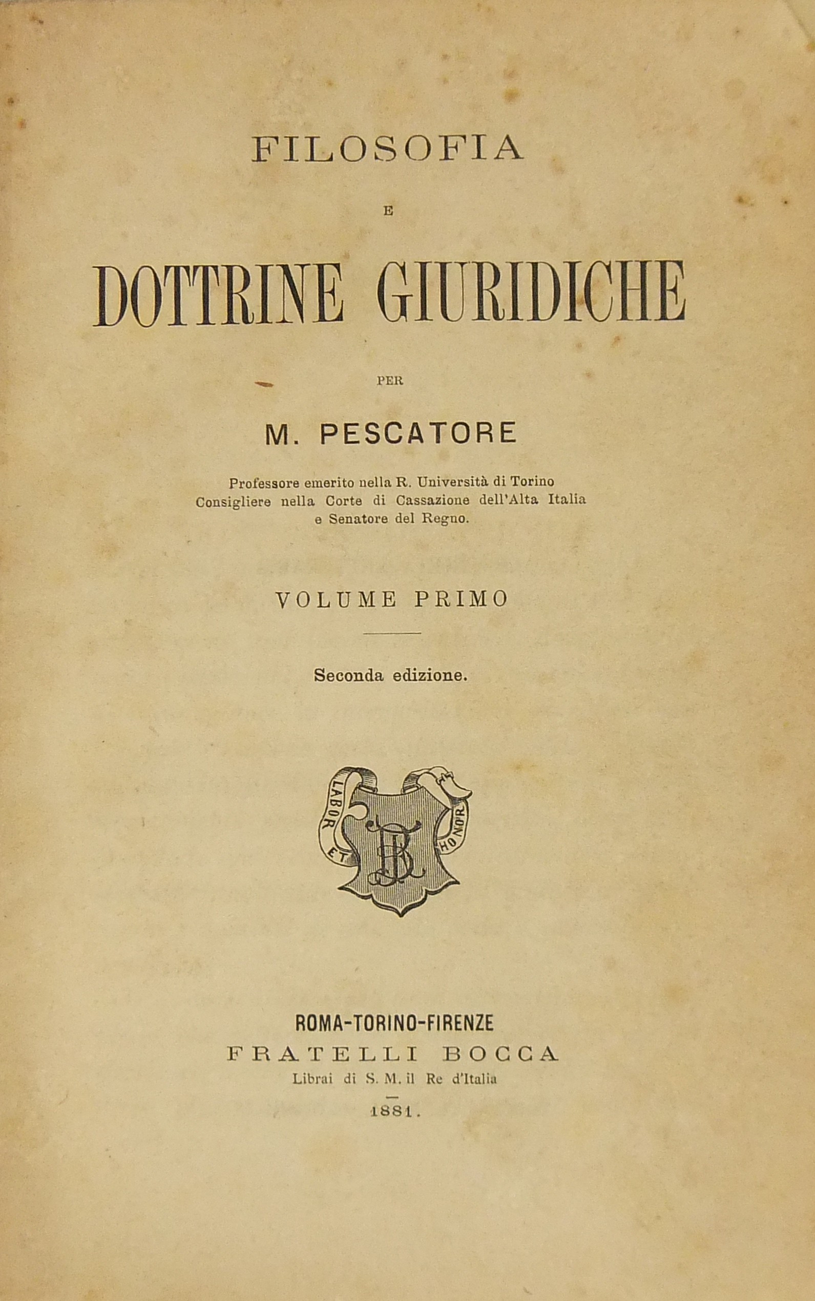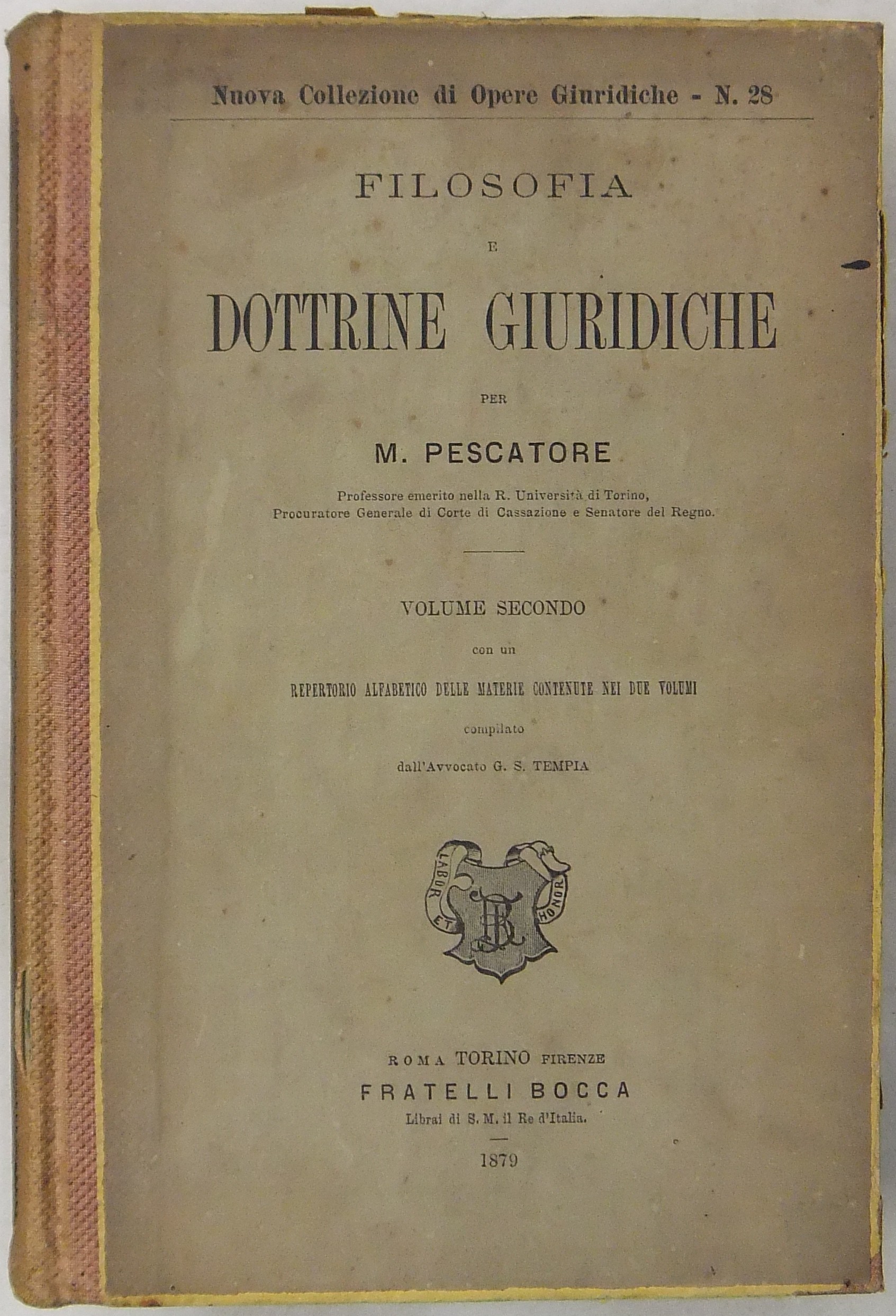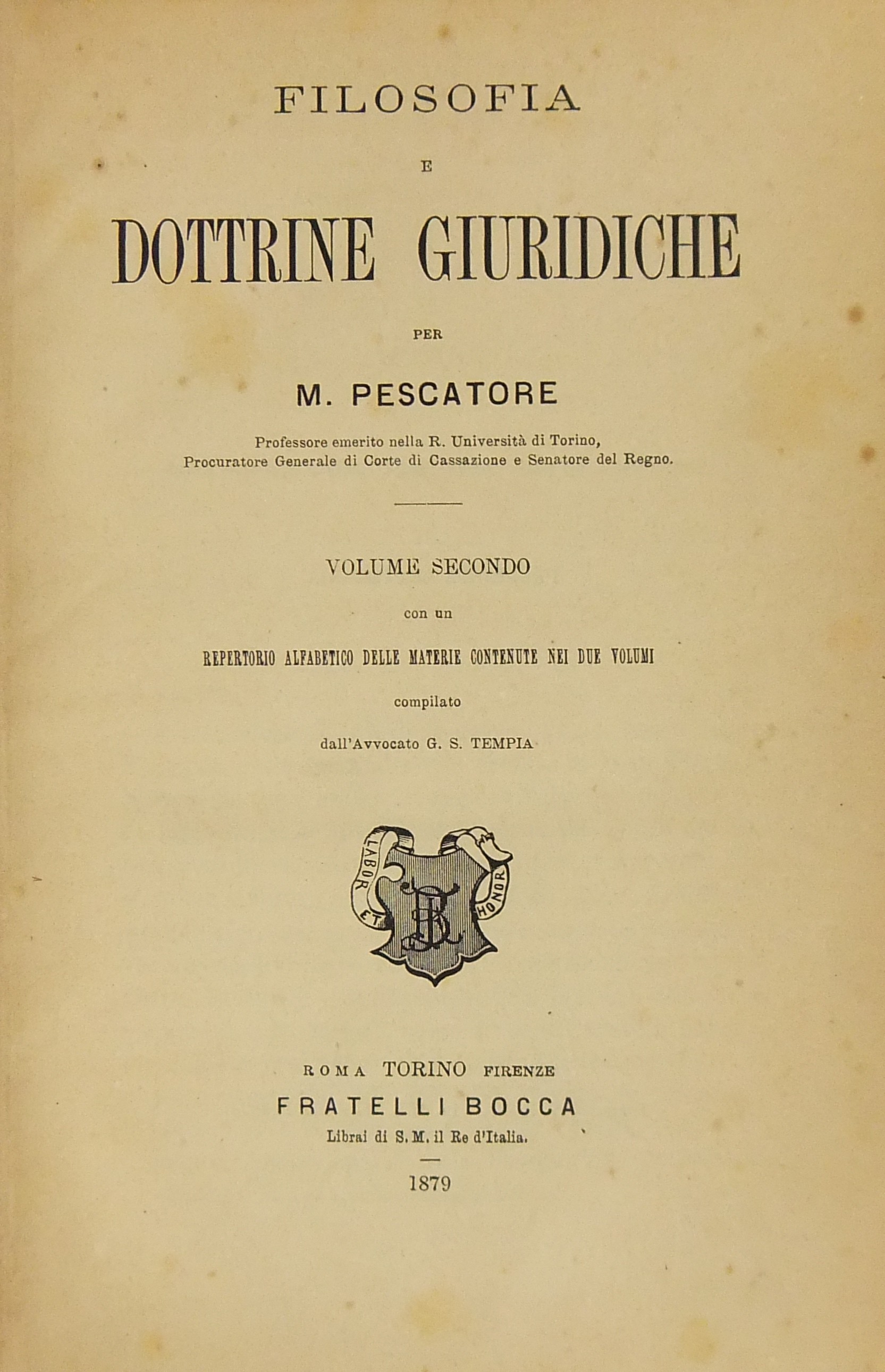 Filosofia e dottrine giuridiche. Con un repertorio alfabetico delle materie contenute compilato da G.S. Tempia