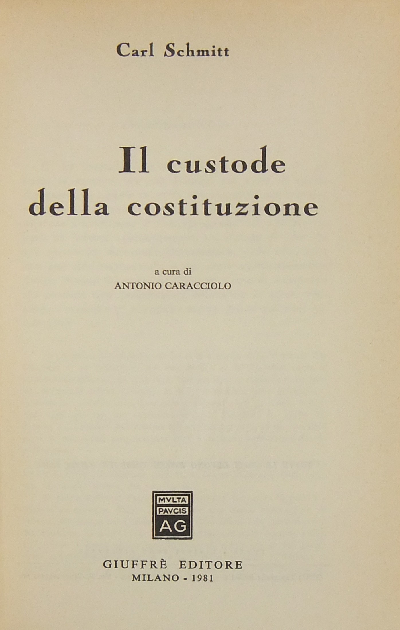 Il custode della costituzione. A cura di Antonio Caracciolo