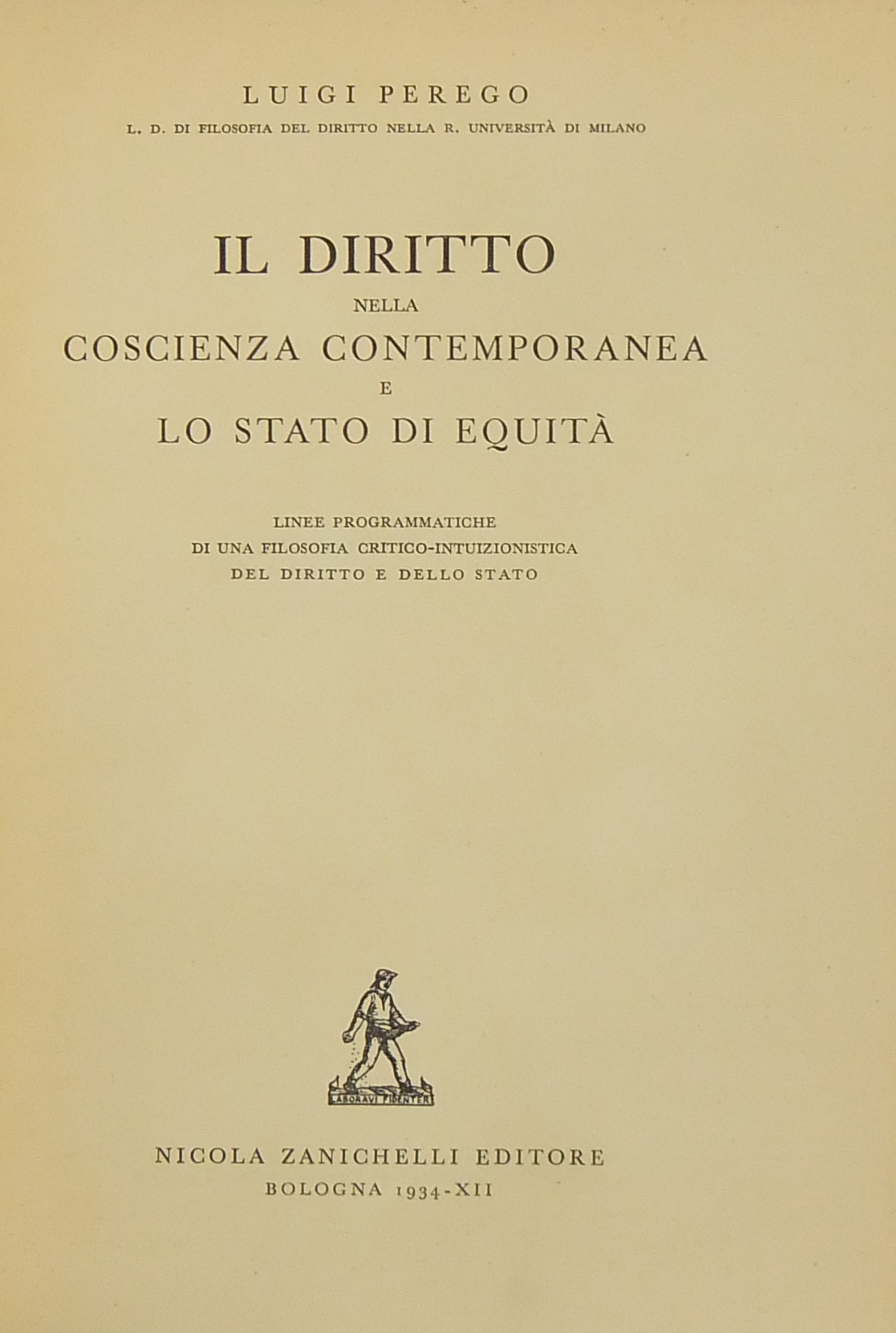 Il diritto nella coscienza contemporanea e lo stato di equità. Linee programmatiche di una filosofia critico-intuizionistica del diritto e dello Stato