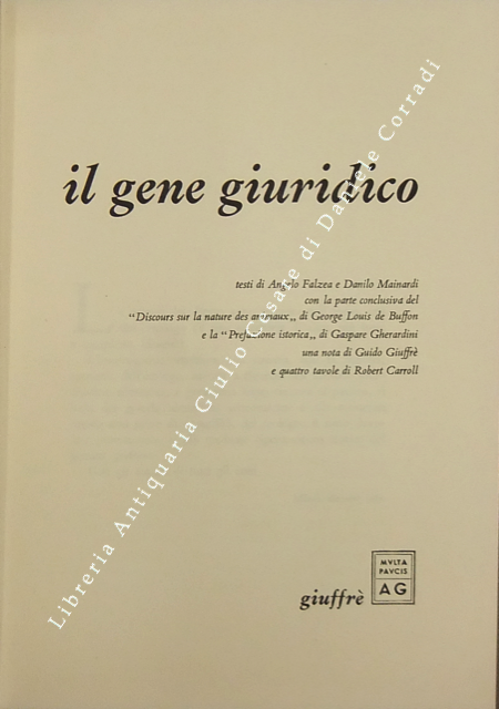 Il gene giuridico. Testi di Angelo Falzea e Danilo Mainardi con la parte conclusiva del "Discours sur la nature des animaux" di George Louis de Buffon e la "Prefazione istorica" di Gaspare Gherardini una nota di Guido Giuffrè e quattro tavole di Robert Carroll