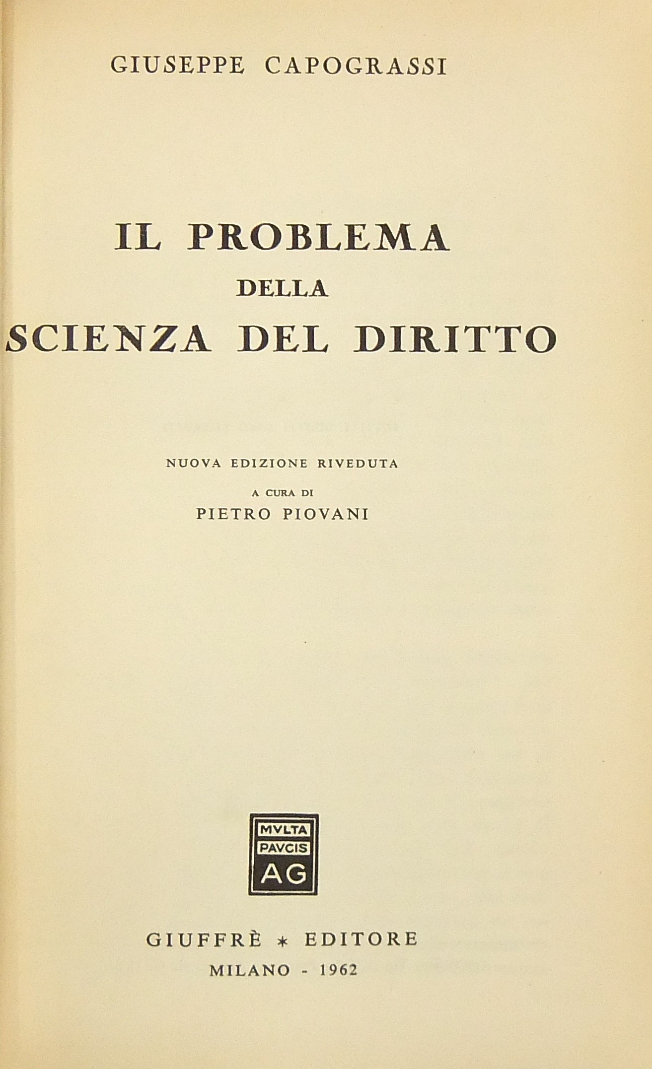 Il problema della scienza del diritto. A cura di Pietro Piovani