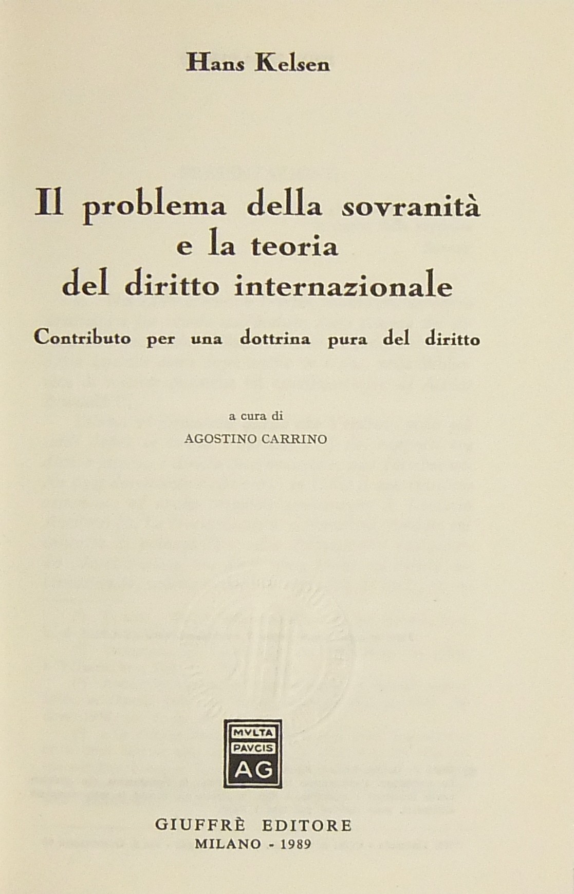 Il problema della sovranità . Contributo per una dottrina pura del diritto. A cura di Agostino Carrino