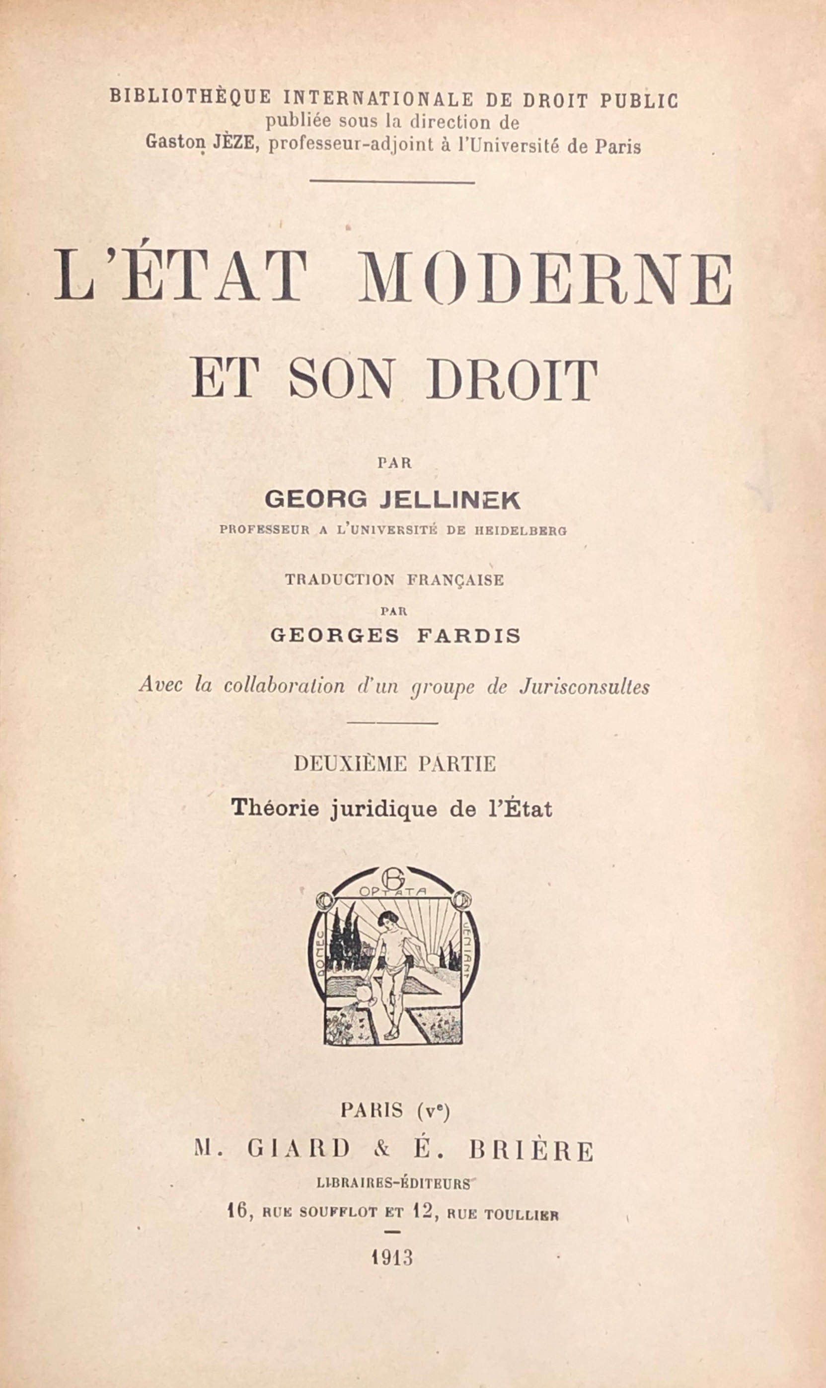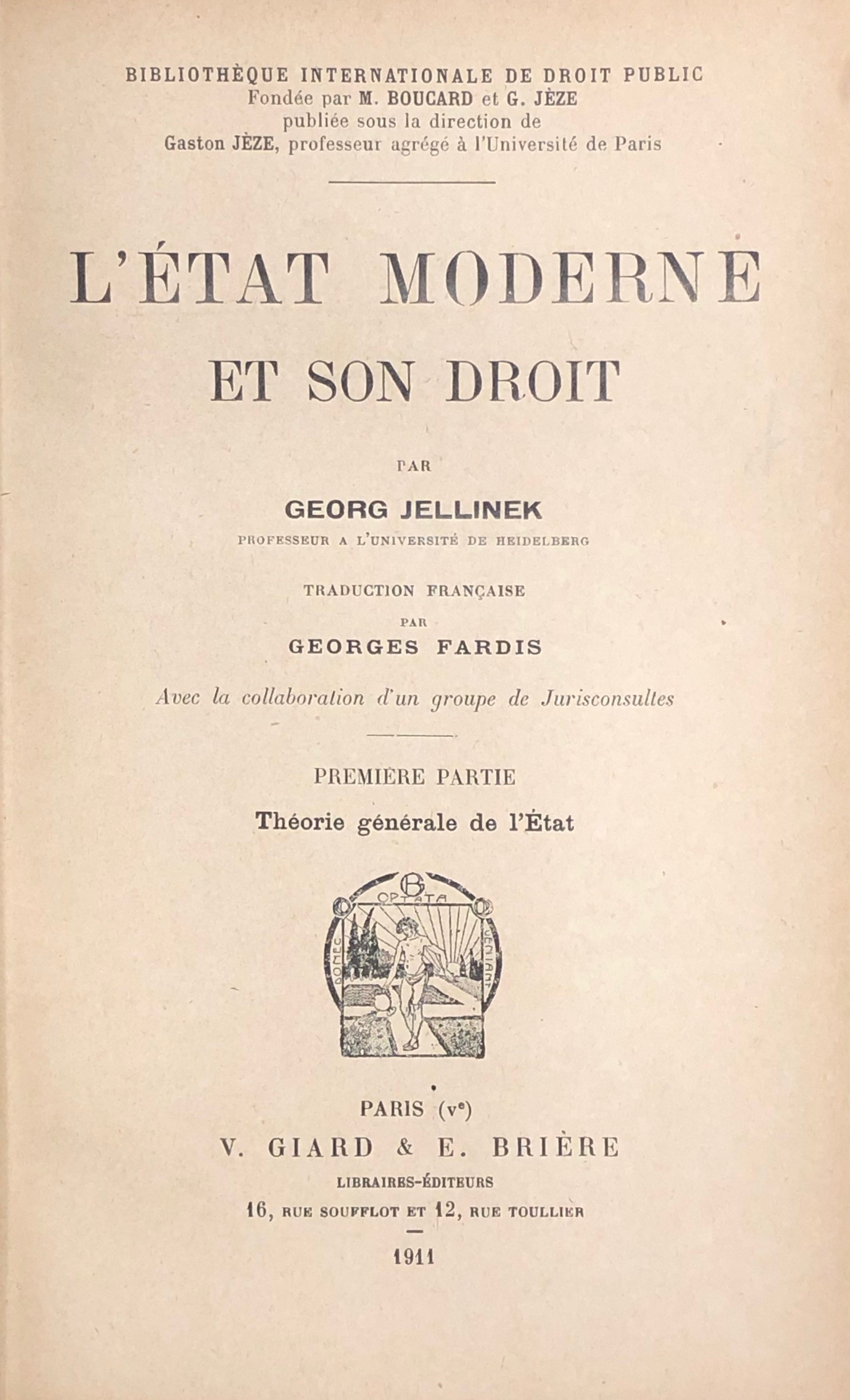 L'Etat moderne et son droit. Traduction française par Georges Fardis. Avec la collaboration d'un groupe de Jurisconsultes. Premiere partie - Theorie generale de l'Etat. Deuxieme partie - Theorie juridique de l'Etat