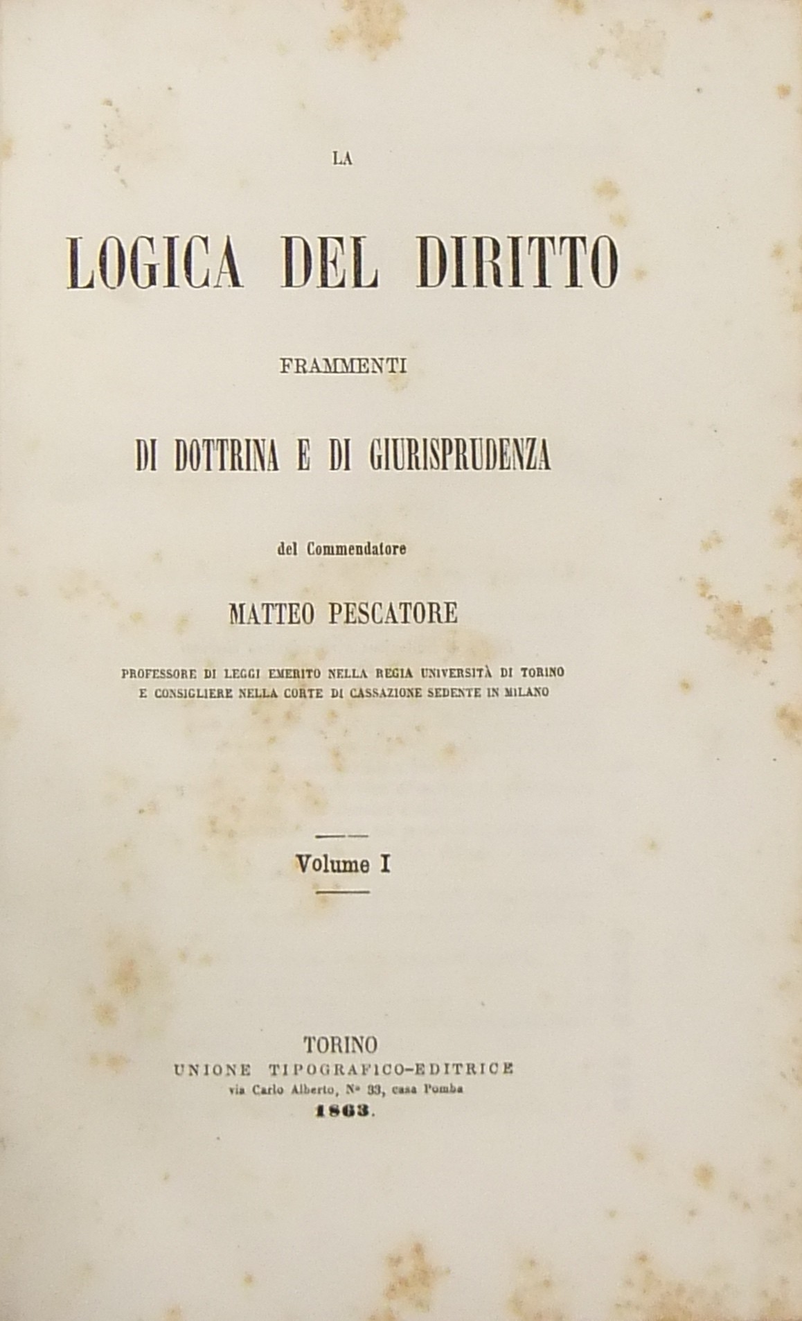 La logica del diritto. Frammenti di dottrina e giurisprudenza. Volume Primo (unico pubblicato)