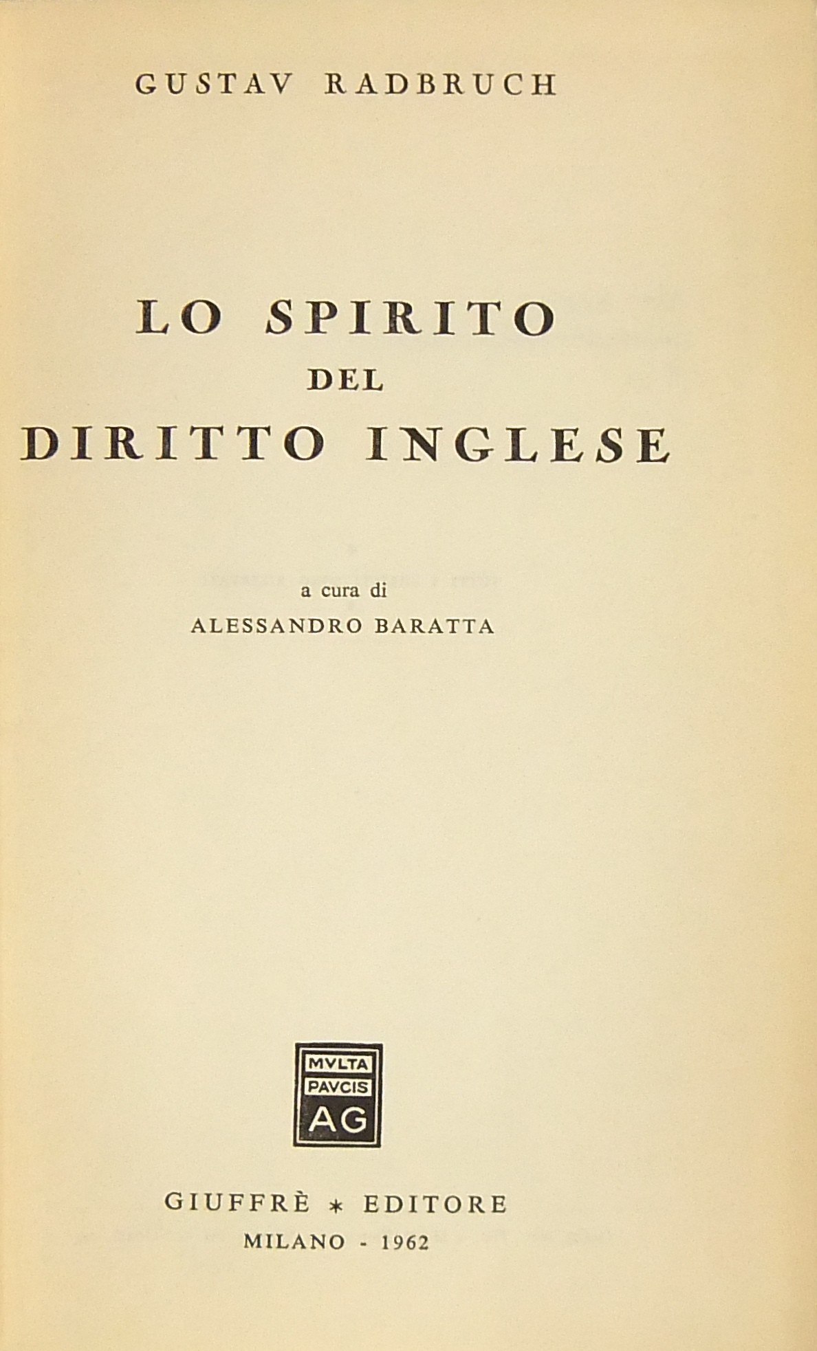 Lo spirito del diritto inglese. A cura di Alessandro Baratta
