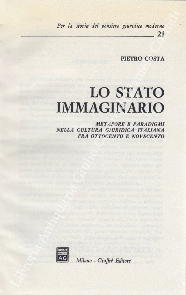Lo Stato immaginario. Metafore e paradigmi nella cultura giuridica italiana fra Ottocento e Novecento