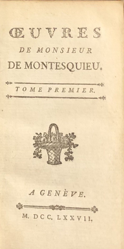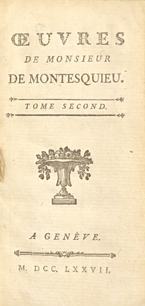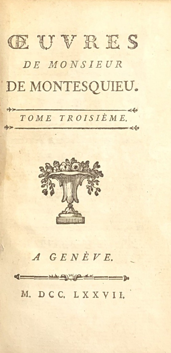 Oeuvres de Monsieur de Montesquieu. De l'Esprit de Loix