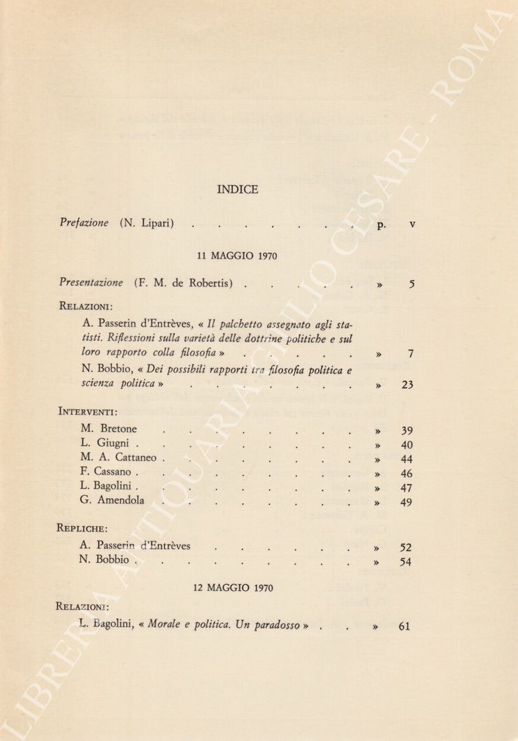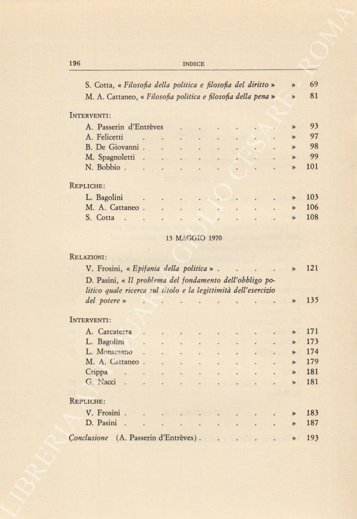 Amendola G. - Bagolini L. - Bobbio, N. - Bretone M. - Carcaterra A. - Cattaneo M.A. - Cotta S. - Frosini V. - Lipari N. - Montesano L. - Pasini D. - Passerin d'Entreves A.