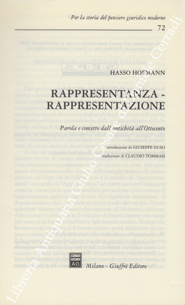 Rappresentanza-Rappresentazione. Parola e concetto dall'antichità all'Ottocento. Introduzione di Giuseppe Duso, traduzione di Claudio Tommasi
