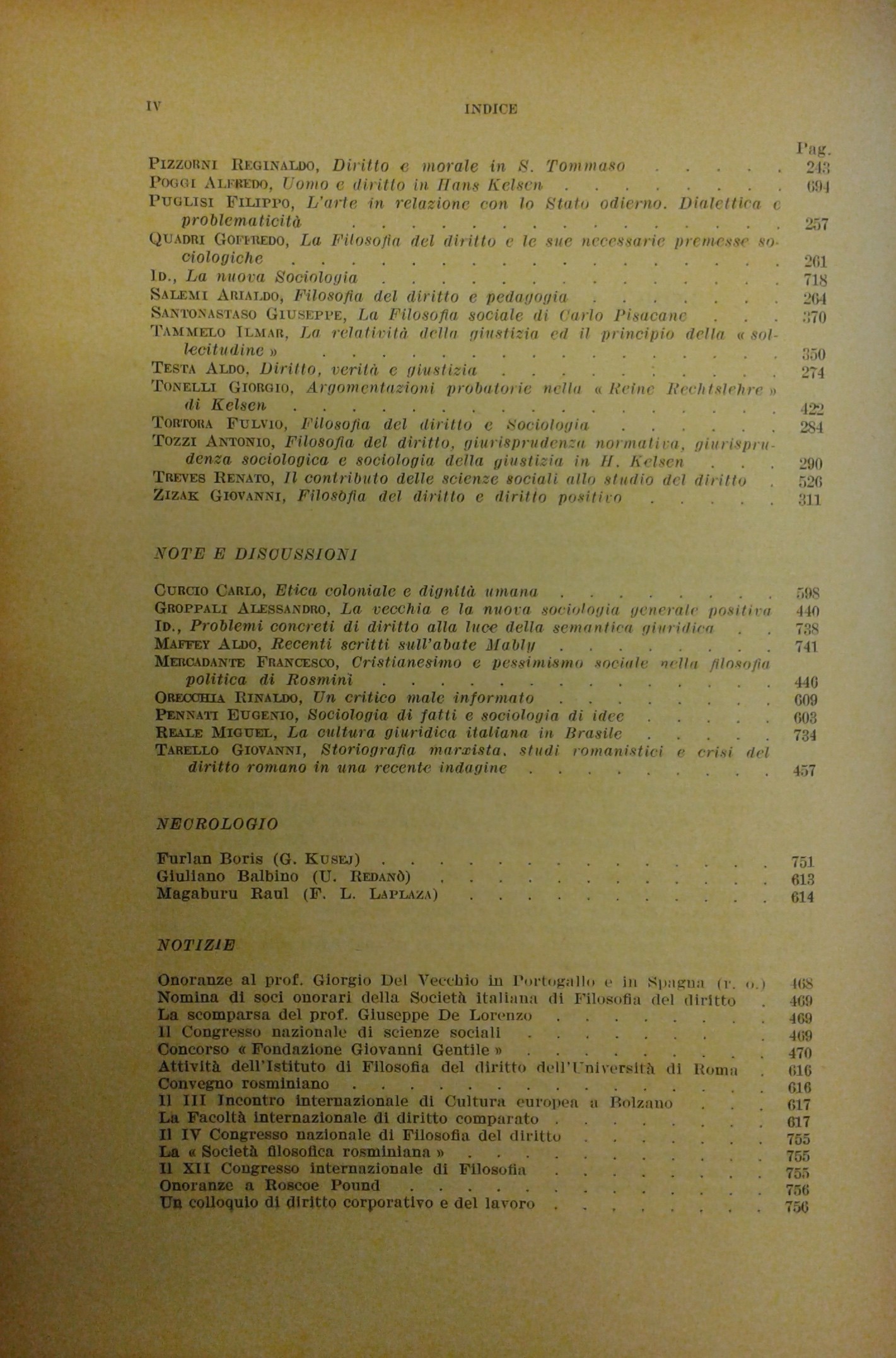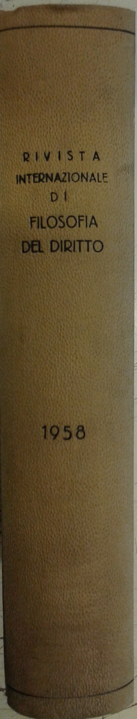 Rivista Internazionale di Filosofia del Diritto. Diretta da G. Del Vecchio. Colla cooperazione di Felice Battaglia, Norberto Bobbio, Widar Cesarini Sforza, Carlo Curcio, Giacomo Perticone. Anno XXXV - Serie III - 1958