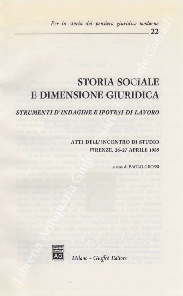 Storia sociale e dimensione giuridica. Strumenti d'indagine e ipotesi di lavoro. Atti d'incontro di studio. Firenze, 26-27 aprile 1985