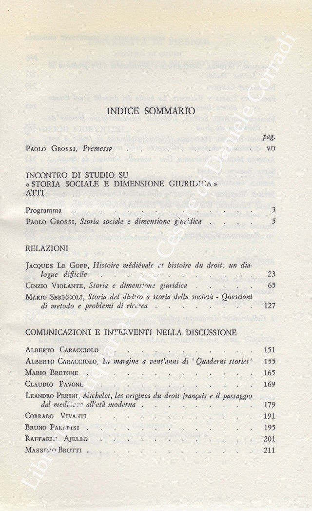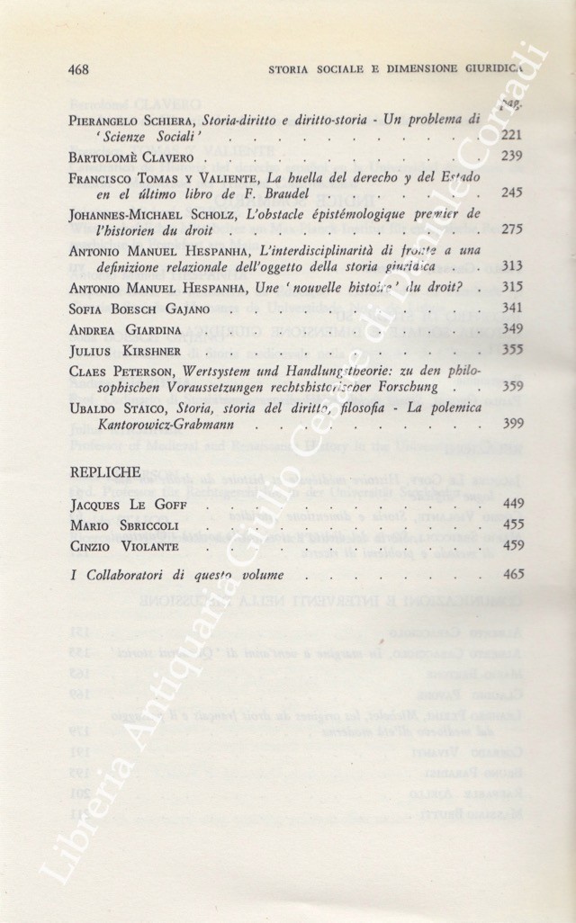 Scritti di: Ajello, Boesch Gajano, Bretone, Brutti, Caracciolo, Clavero, Giardina, Grossi, Hespanha, Kirshner, Le Goff, Paradisi, Pavone, Perini, Peterson, Sbriccoli, Schiera, Scholz, Staico, Tomas Y Valiente, Violante, Vivanti.