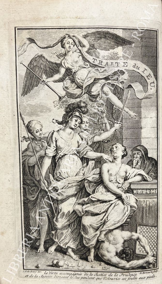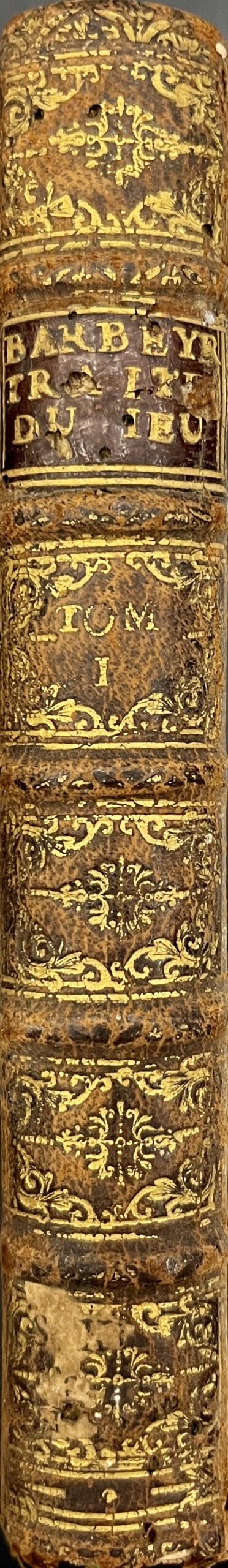Edizione particolarmente curata e arricchita daila pregevole incisione di Du Bourg e Bernaerts. Opera dedicata ai giochi d?azzardo e ai giochi in generale scritta dal noto giurista francese, Jean Barbeyrac già famoso per le traduzioni delle opere sul diritto naturale di Samuel von Pufendorf