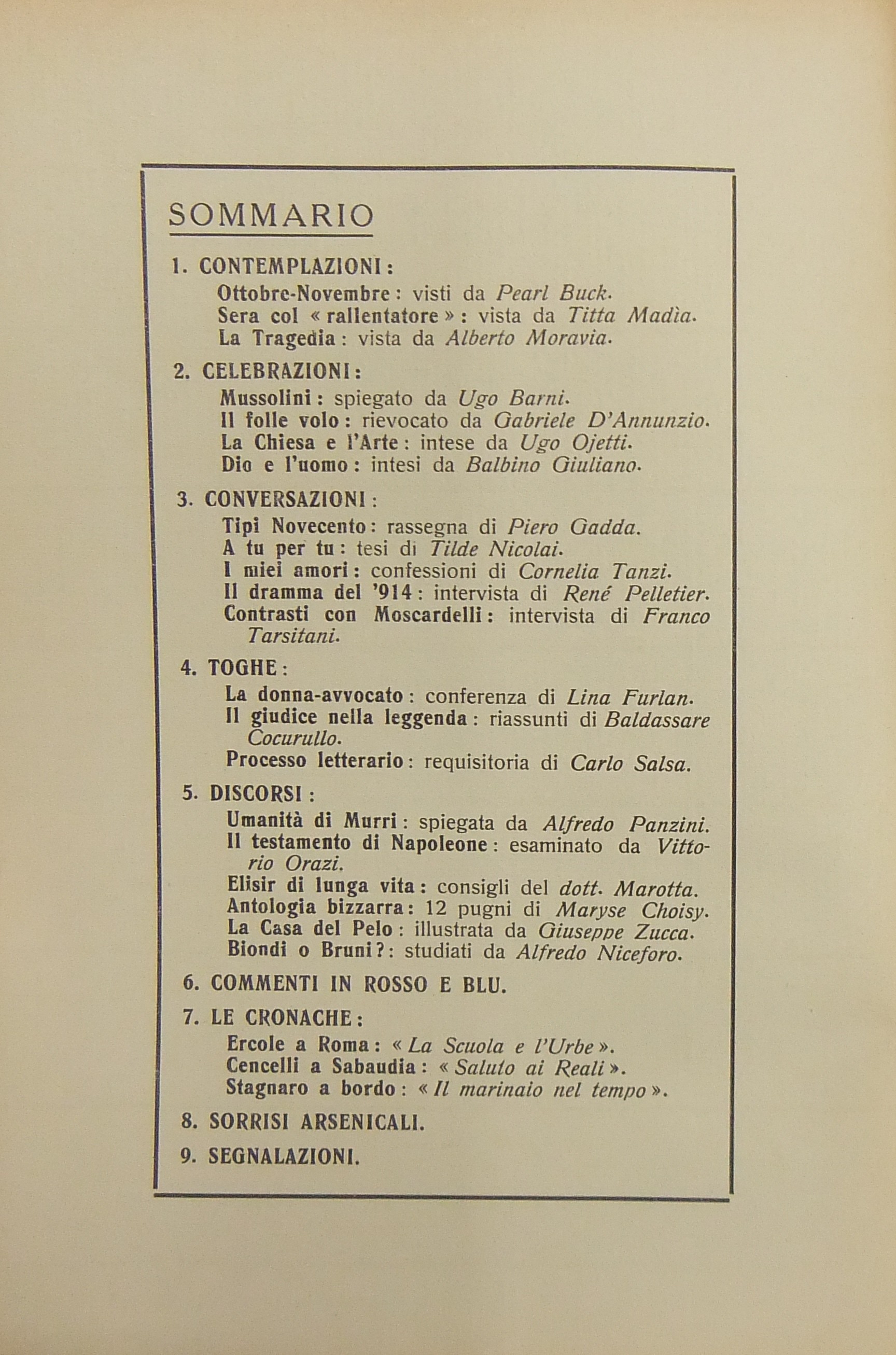 Gadda C.E. - Moravia A. - Niceforo A. et alii
