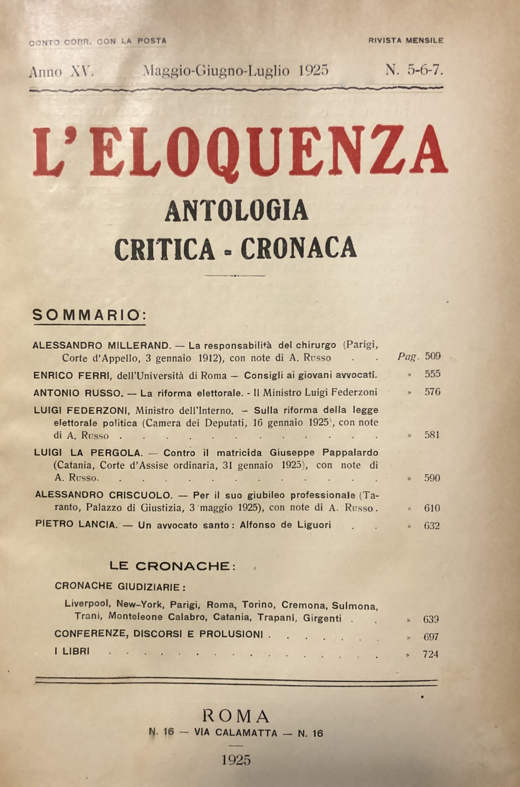 L'eloquenza. Antologia, critica, cronaca. Anno XV - 1925
