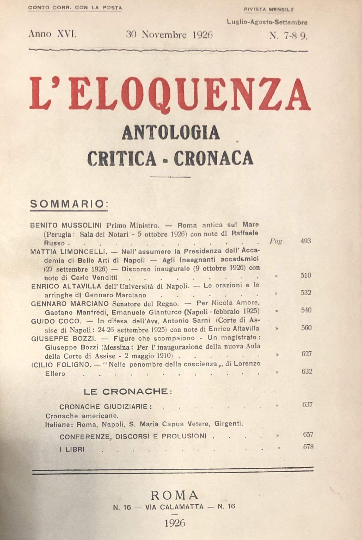 L'eloquenza. Antologia, critica, cronaca. Anno XVI - 1926