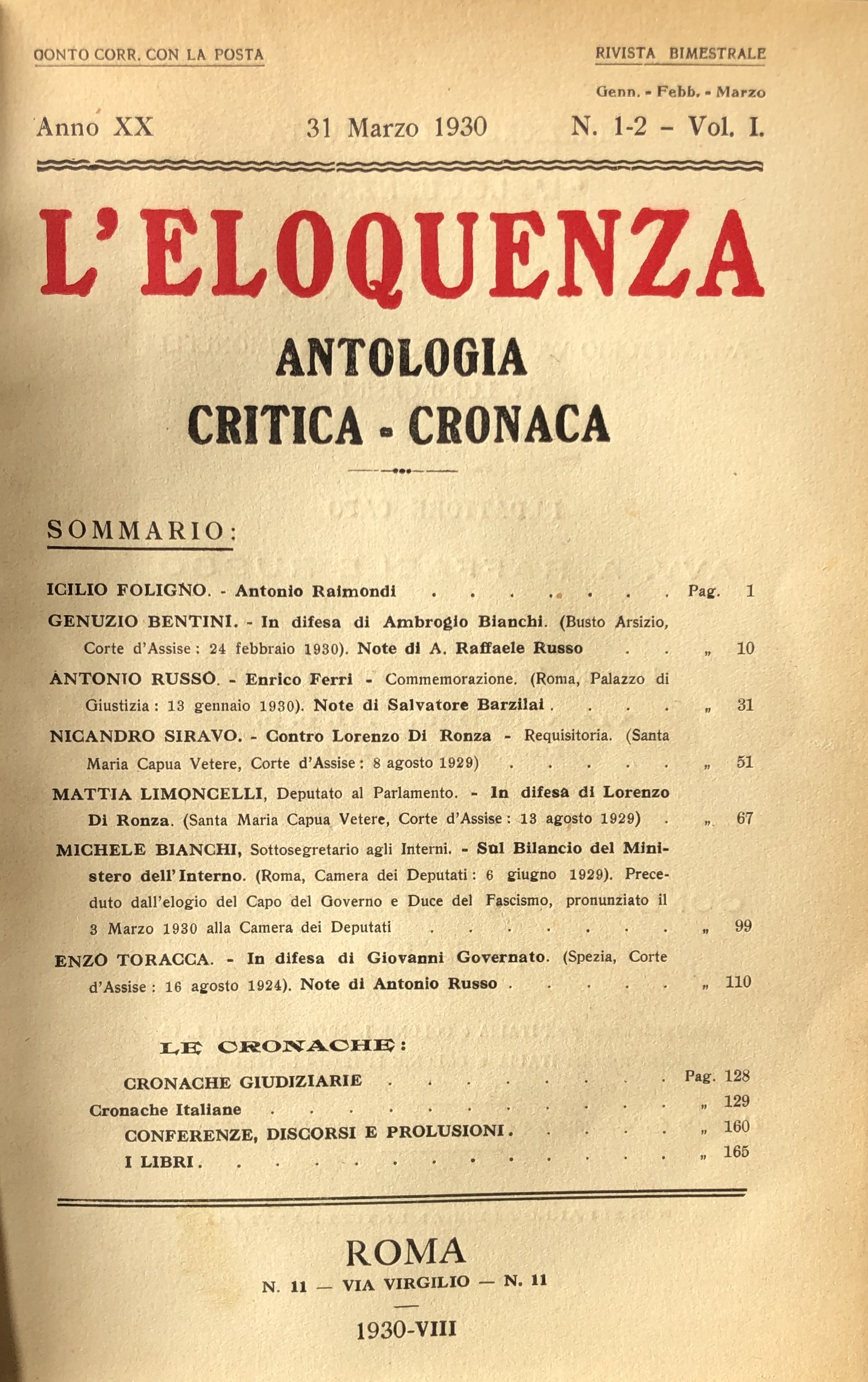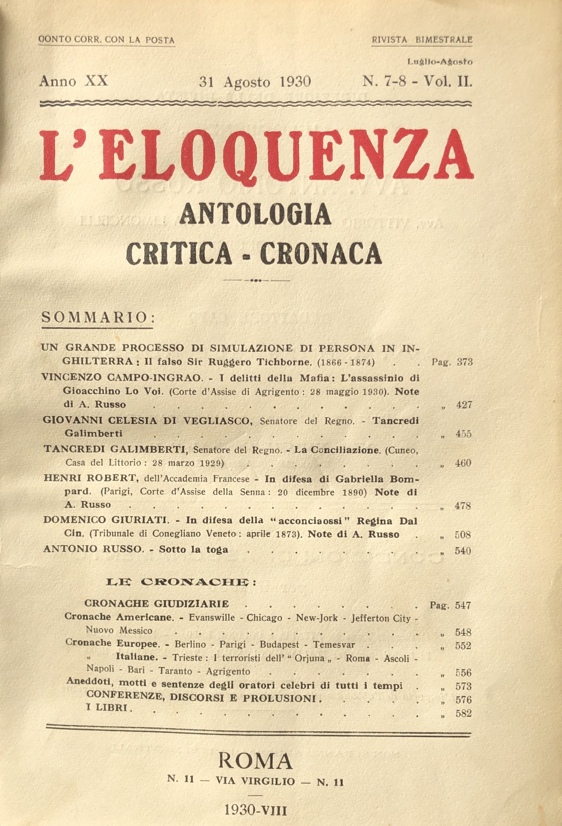 L'eloquenza. Antologia, critica, cronaca. Anno XX - 1930