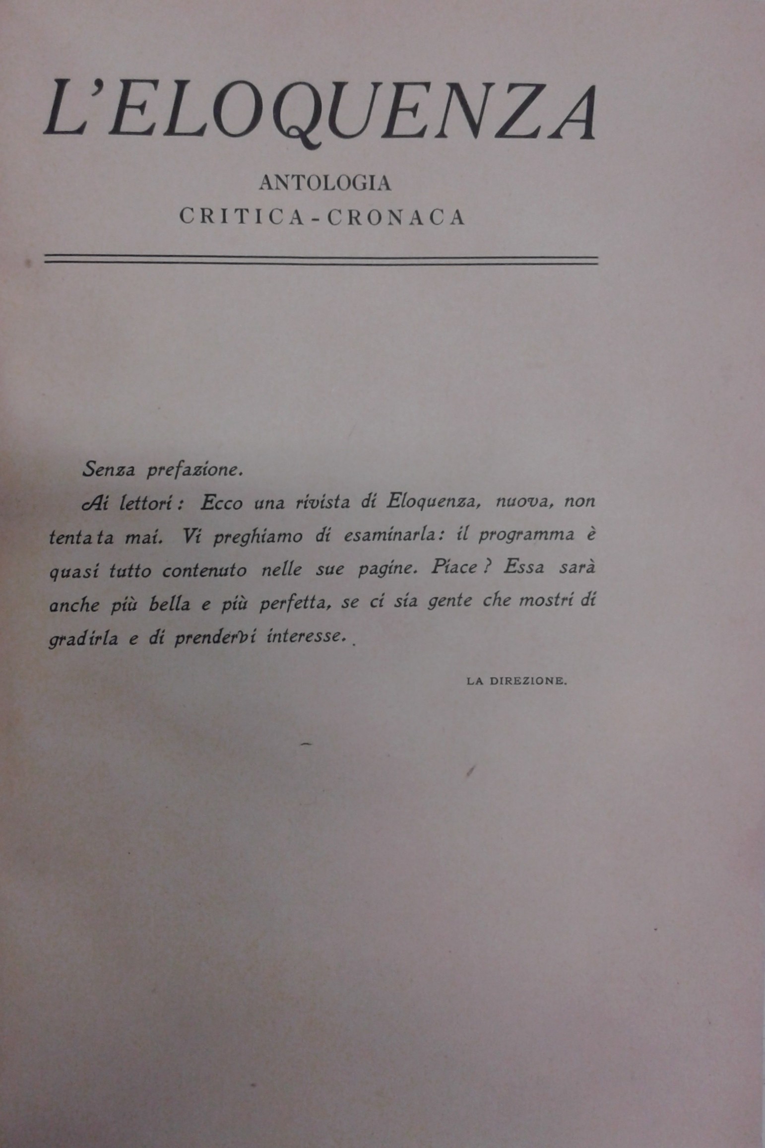 L’eloquenza. Antologia, critica, cronaca