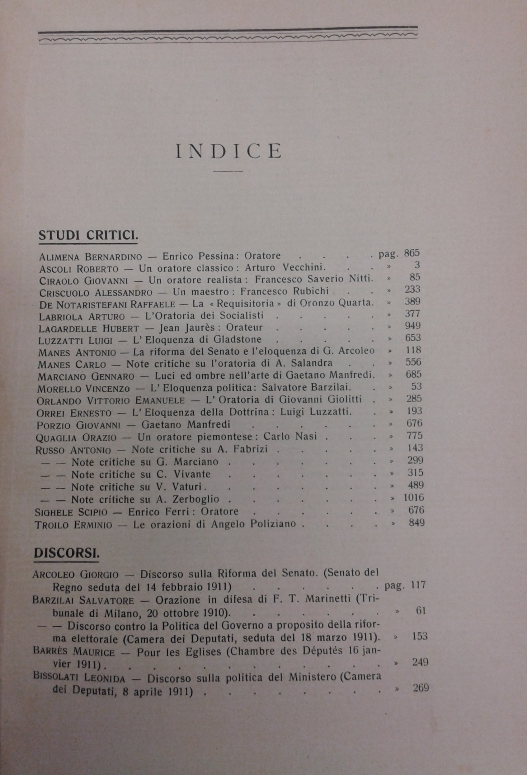 Alimena B. - Ferri E. - Giolitti G. - Labriola A. - Luzzatti L. - Marciano G. - Orlando V.E. - Porzio G. - Sighele S. et alii