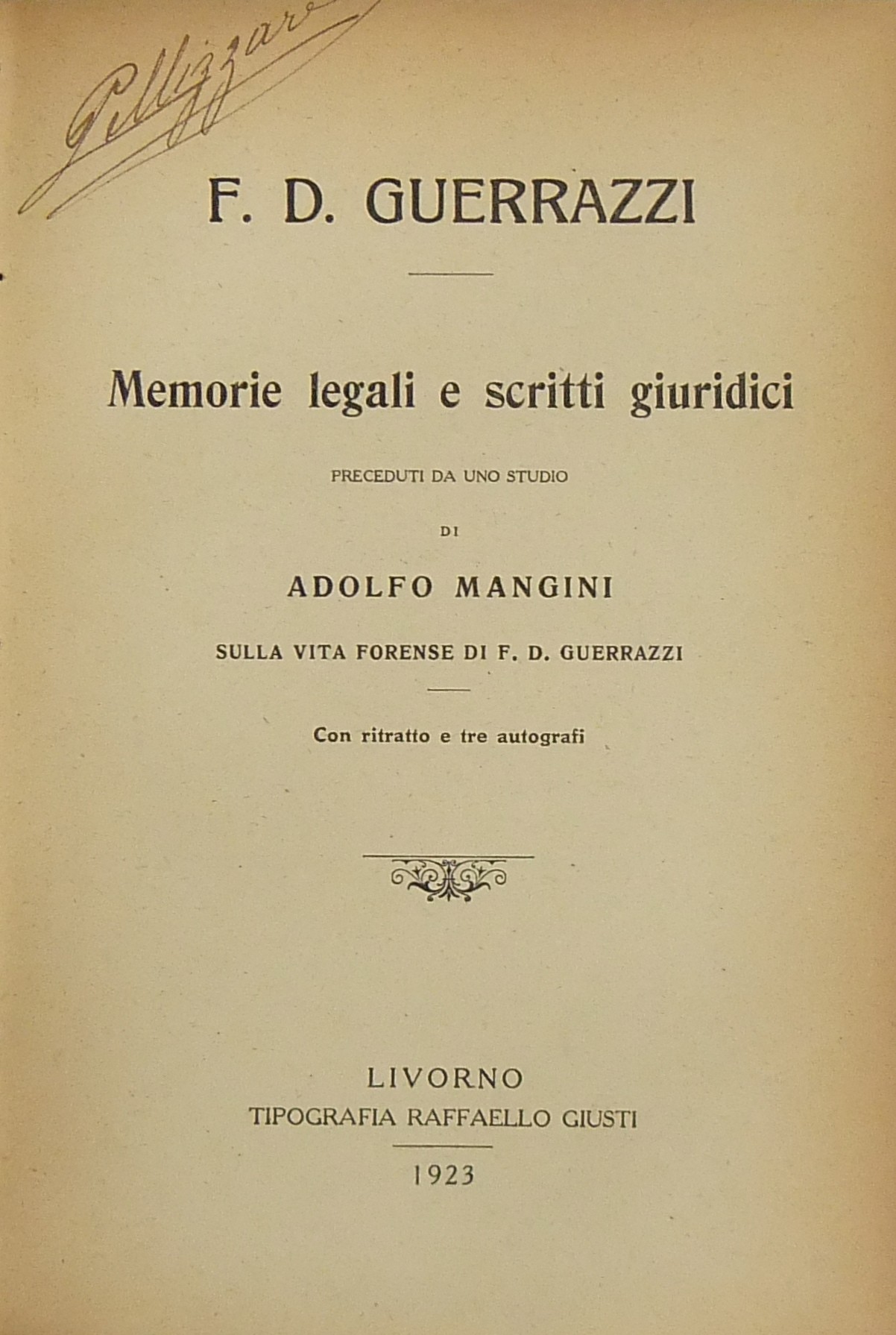Memorie legali e scritti giuridici. Preceduti da uno studio di Adolfo Mangini sulla vita forense di F.D. Guerrazzi. Con ritratto e tre autografi
