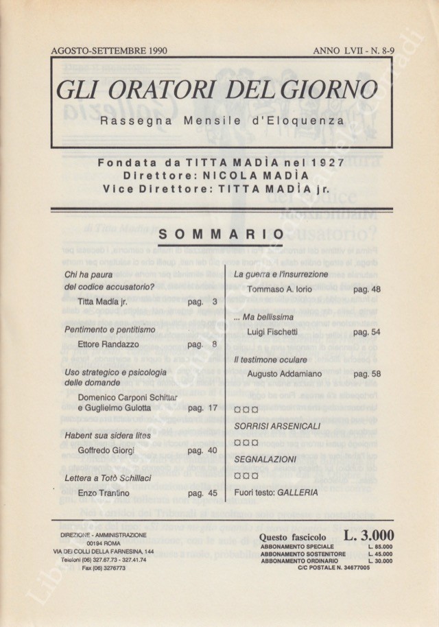 Gli oratori del giorno. Rassegna mensile d’eloquenza. Anno LVIII – Numero 8-9. Agosto-Settembre 1990