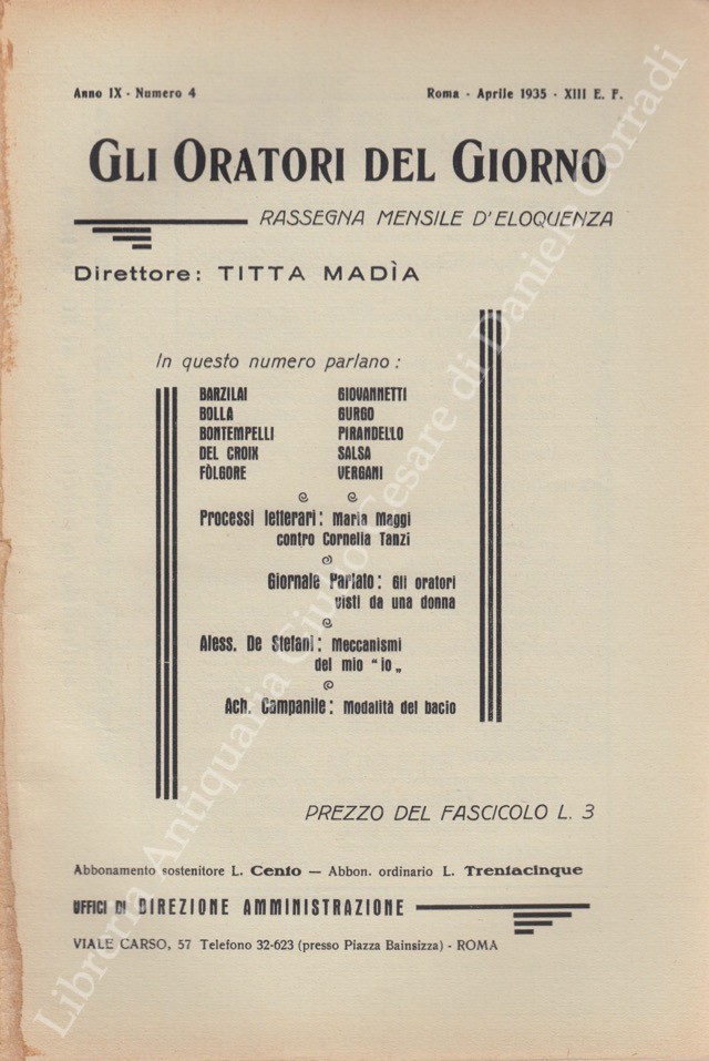 Gli oratori del giorno. Rassegna mensile d’eloquenza. Anno IX – Numero 4. Aprile 1935