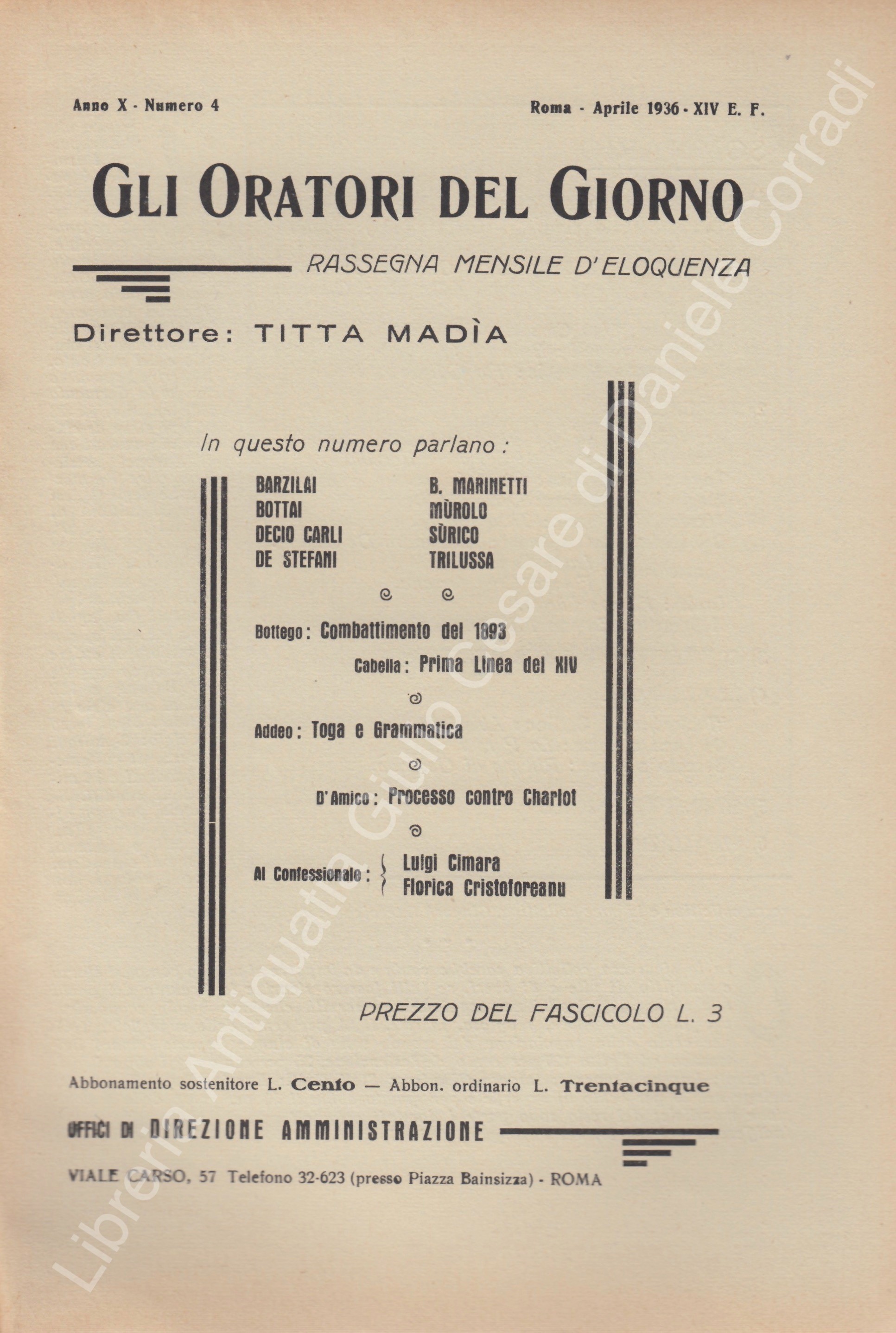 Gli oratori del giorno. Rassegna mensile d'eloquenza. Anno X - Numero 4. Aprile 1936