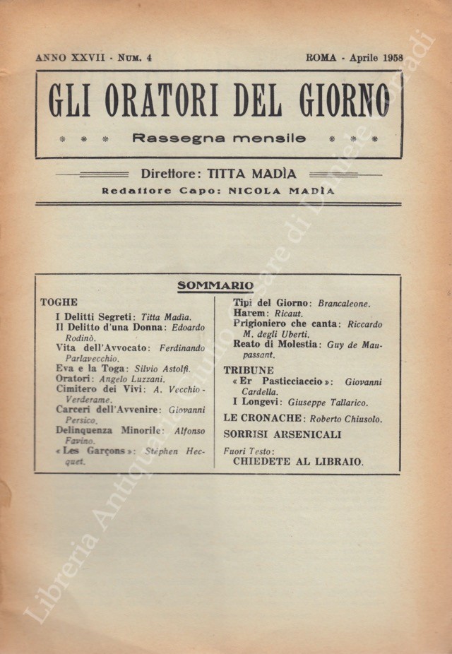 Gli oratori del giorno. Rassegna mensile d'eloquenza. Anno XXVII - Numero 4. Aprile 1958