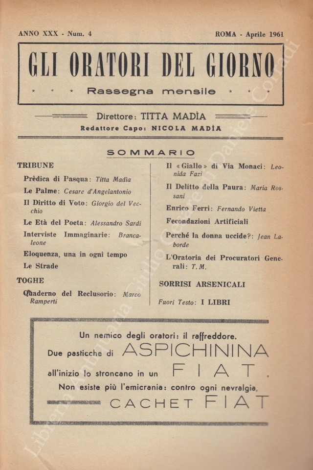 Gli oratori del giorno. Rassegna mensile d'eloquenza. Anno XXX - Numero 4. Aprile 1961