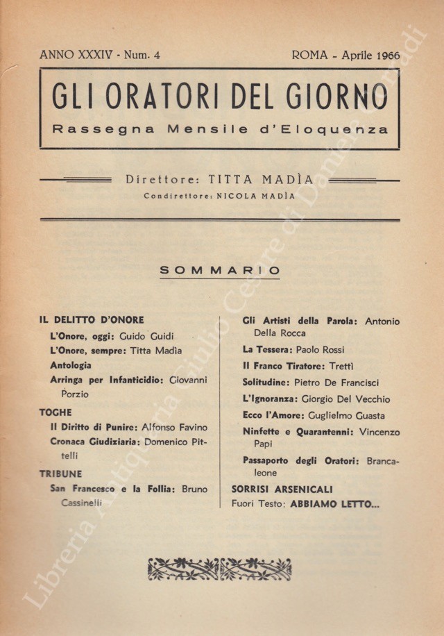 Gli oratori del giorno. Rassegna mensile d’eloquenza. Anno XXXIV – Numero 4. Aprile 1966