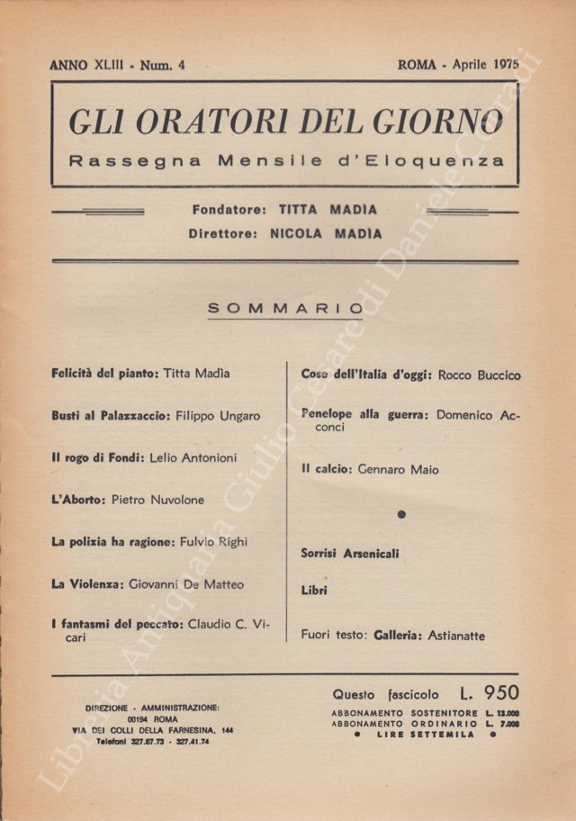 Gli oratori del giorno. Rassegna mensile d'eloquenza. Anno XLIII - Numero 4. Aprile 1975