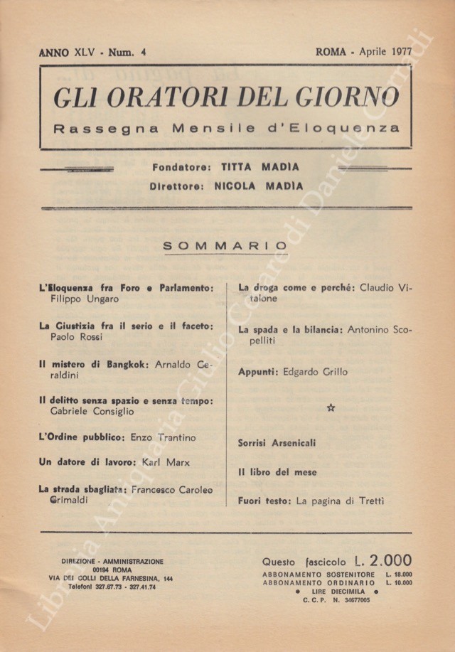 Gli oratori del giorno. Rassegna mensile d'eloquenza. Anno XLV - Numero 4. Aprile 1977