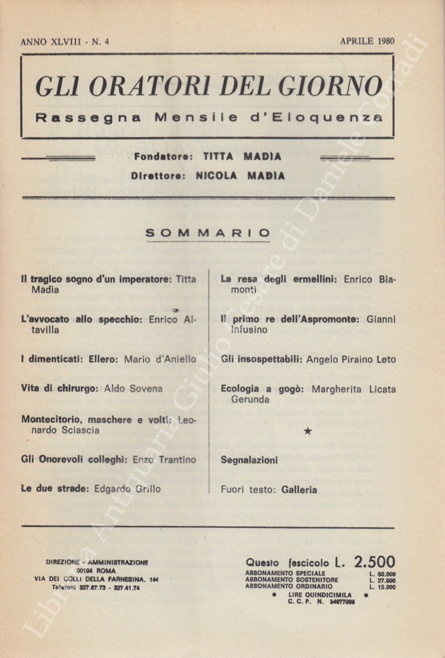 Gli oratori del giorno. Rassegna mensile d’eloquenza. Anno XLVIII – Numero 4. Aprile 1980