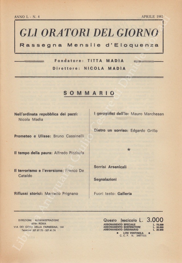 Gli oratori del giorno. Rassegna mensile d’eloquenza. Anno L – Numero 4. Aprile 1982