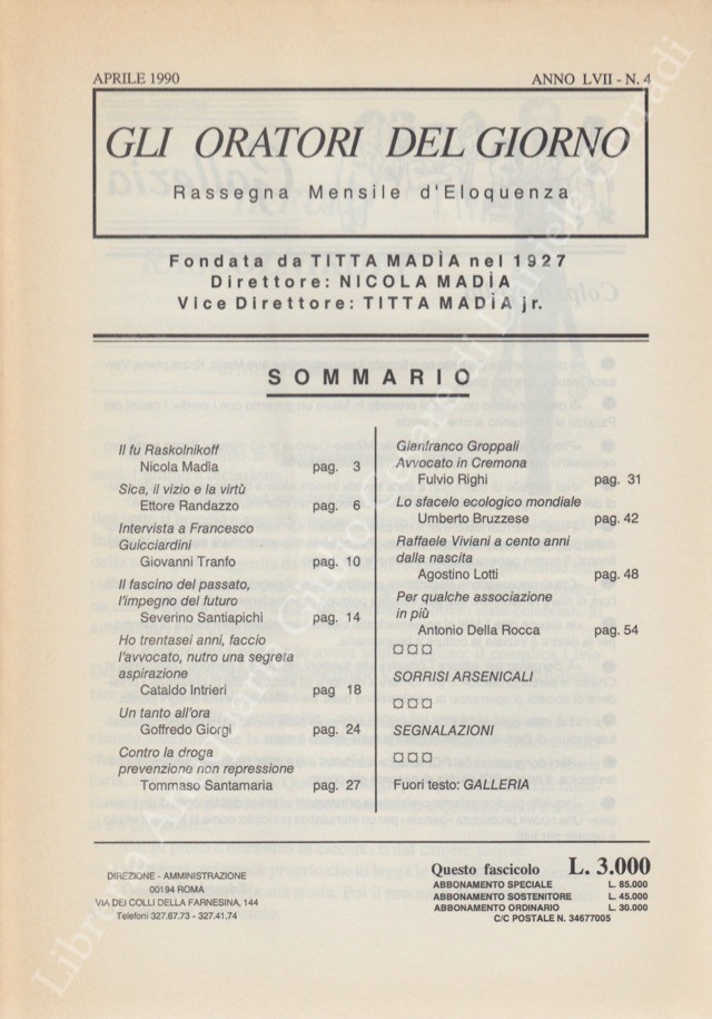 Gli oratori del giorno. Rassegna mensile d'eloquenza. Anno LVIII - Numero 4. Aprile 1990