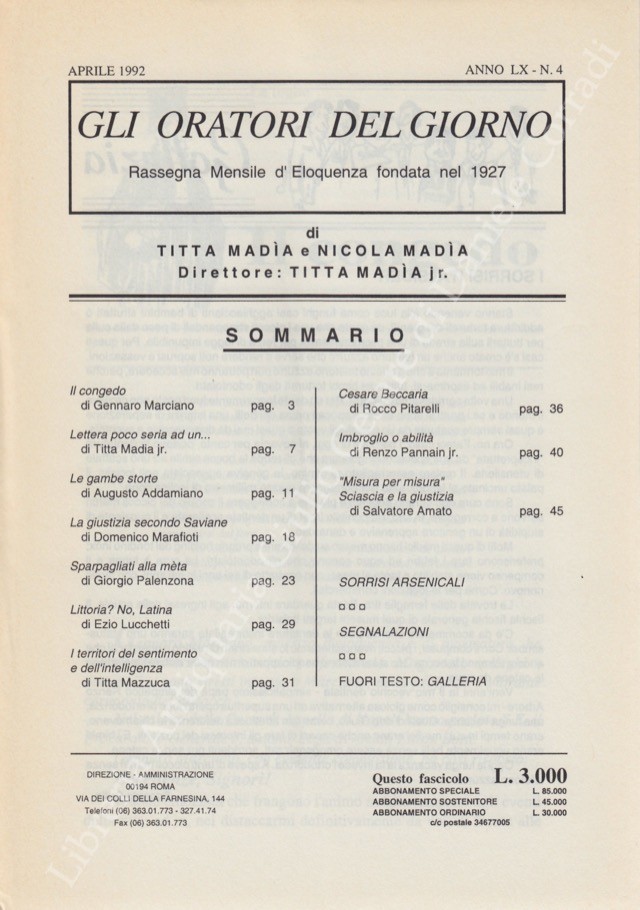 Gli oratori del giorno. Rassegna mensile d'eloquenza. Anno LX - Numero 4. Aprile 1992
