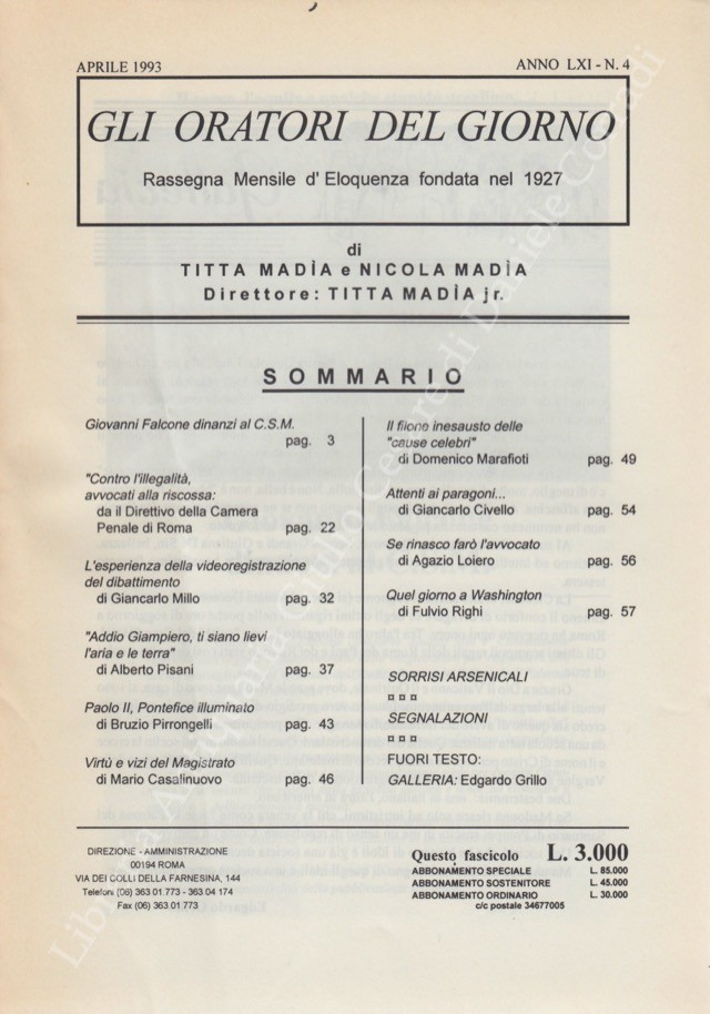 Gli oratori del giorno. Rassegna mensile d'eloquenza. Anno LXI - Numero 4. Aprile 1993